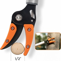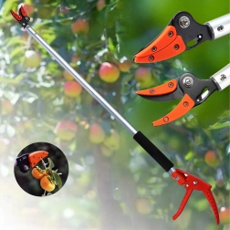 Ten długi nożycowy sekator został zaprojektowany do wygodnego przycinania gałęzi, formowania krzewów oraz bezpiecznego zbioru owoców z wyżej położonych miejsc. Dzięki lekkiemu aluminiowemu korpusowi narzędzie jest łatwe w manewrowaniu, a ostre, trwałe ostrze zapewnia czyste i precyzyjne cięcie.