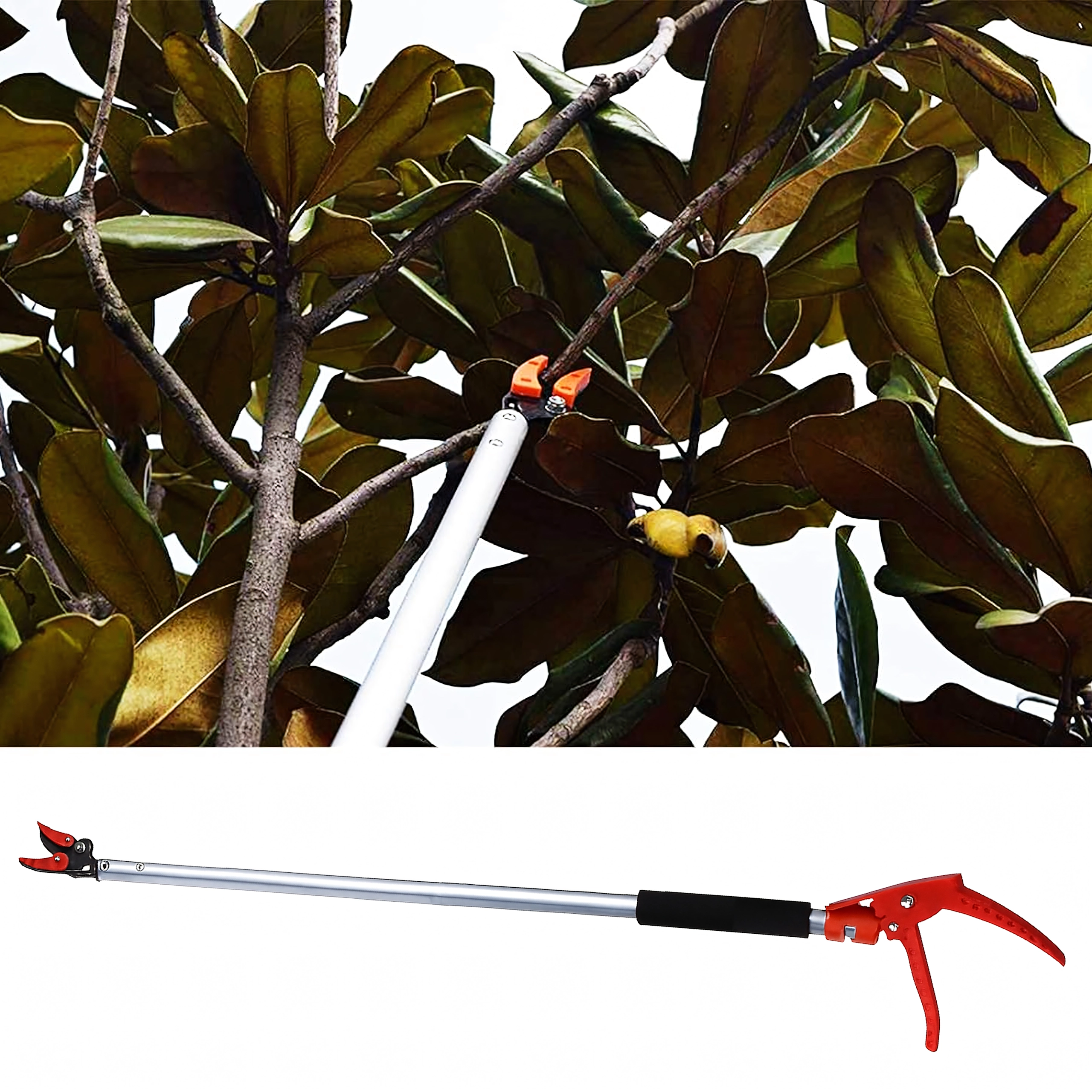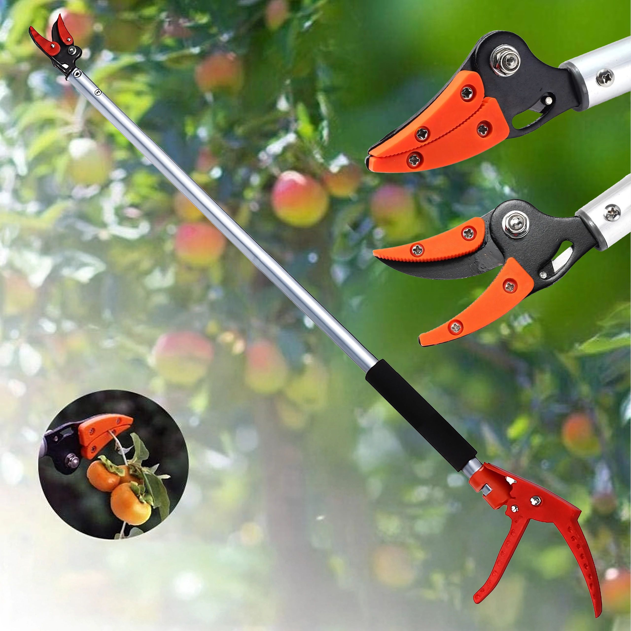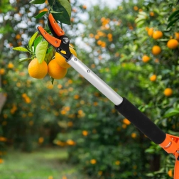 Długość 100 cm i lekka konstrukcja umożliwiają przycinanie gałęzi oraz bezpieczny zbiór owoców z poziomu ziemi.