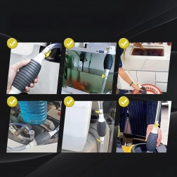 Praktyczna ręczna pompa syfonowa z wężem o długości 1 m umożliwia szybkie i bezpieczne przepompowywanie paliwa, oleju, diesla, wody oraz innych cieczy. Dzięki zaworowi zwrotnemu zapobiega cofaniu się cieczy i ułatwia start przepływu. Jest kompaktowa, trwała i łatwa w obsłudze – idealna do domu, garażu i warsztatu.