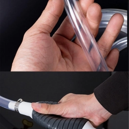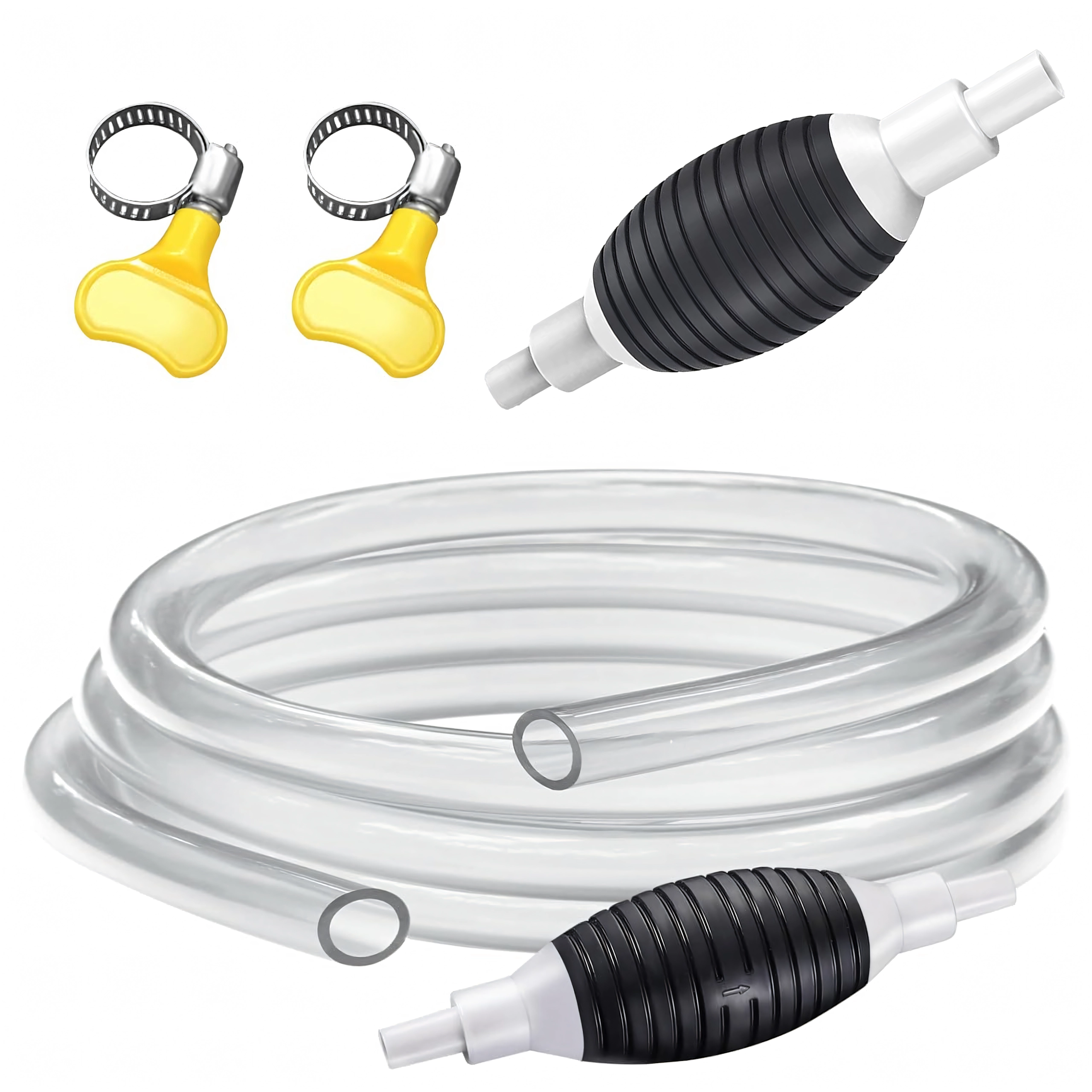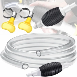 Ręczna pompa z gruszką i przezroczystym wężem to niezawodne rozwiązanie do przelewania cieczy między pojemnikami, ze zbiorników lub akwariów. Przezroczysty wąż umożliwia wizualną kontrolę przepływu, a zintegrowany zawór zwrotny zapobiega niepożądanemu cofaniu cieczy.