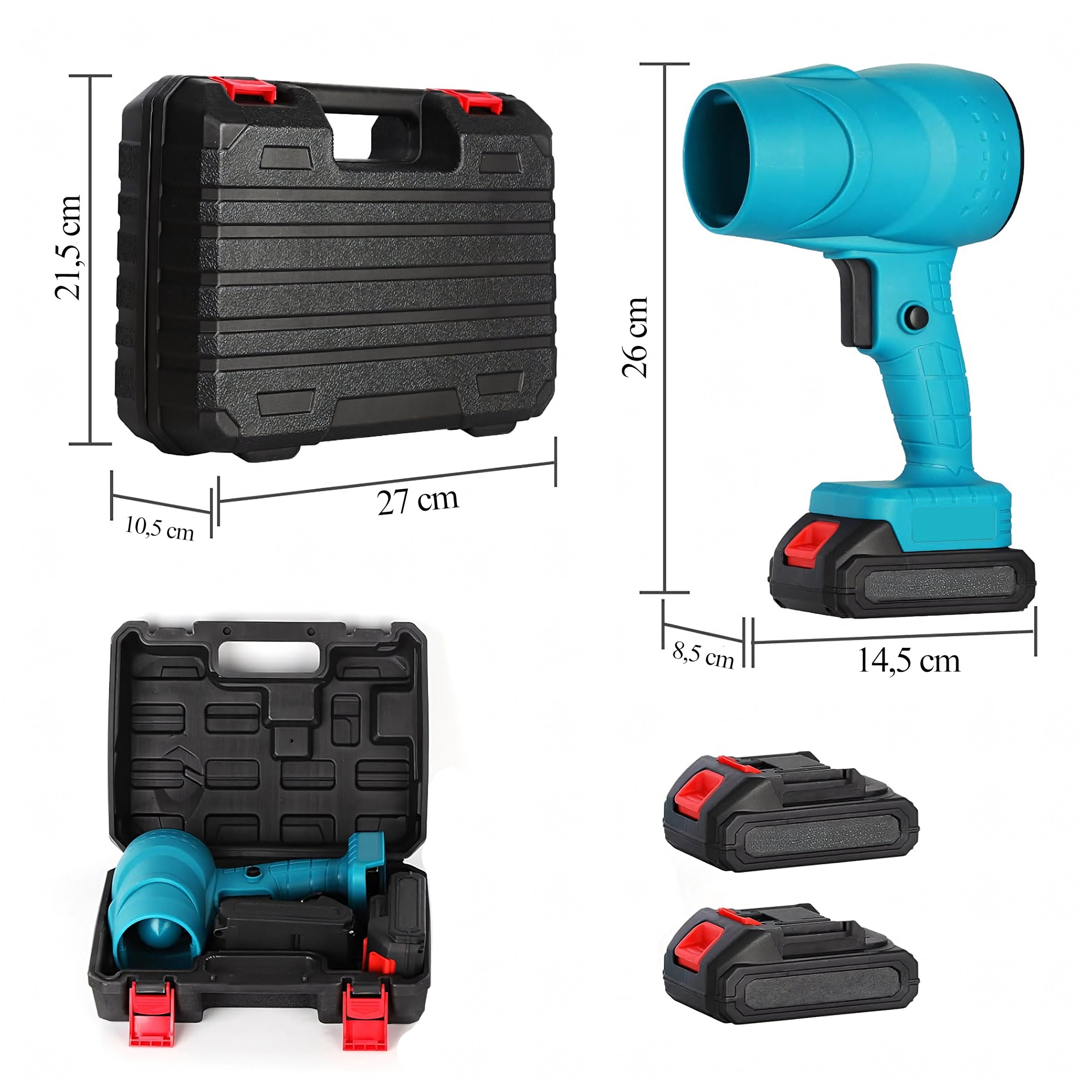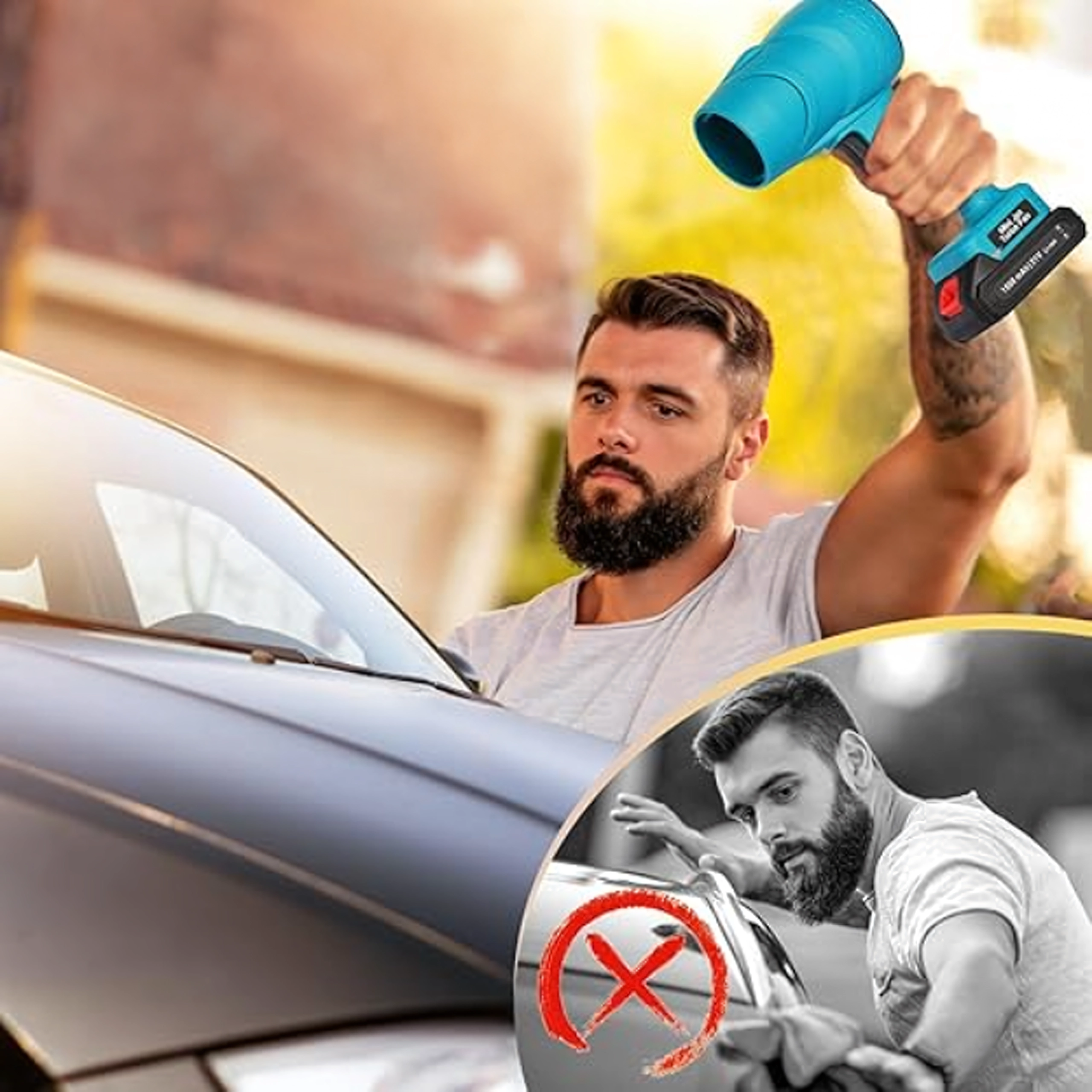 Ta bezprzewodowa dmuchawa wykorzystuje technologię turbosprężarki do natychmiastowego skupienia i wysokiej prędkości przepływu powietrza. Łatwo zgranie suche liście z chodników i podjazdów, wydmucha kurz z kątów i narzędzi, a także szybko pomoże w suszeniu powierzchni, na przykład po myciu samochodu.