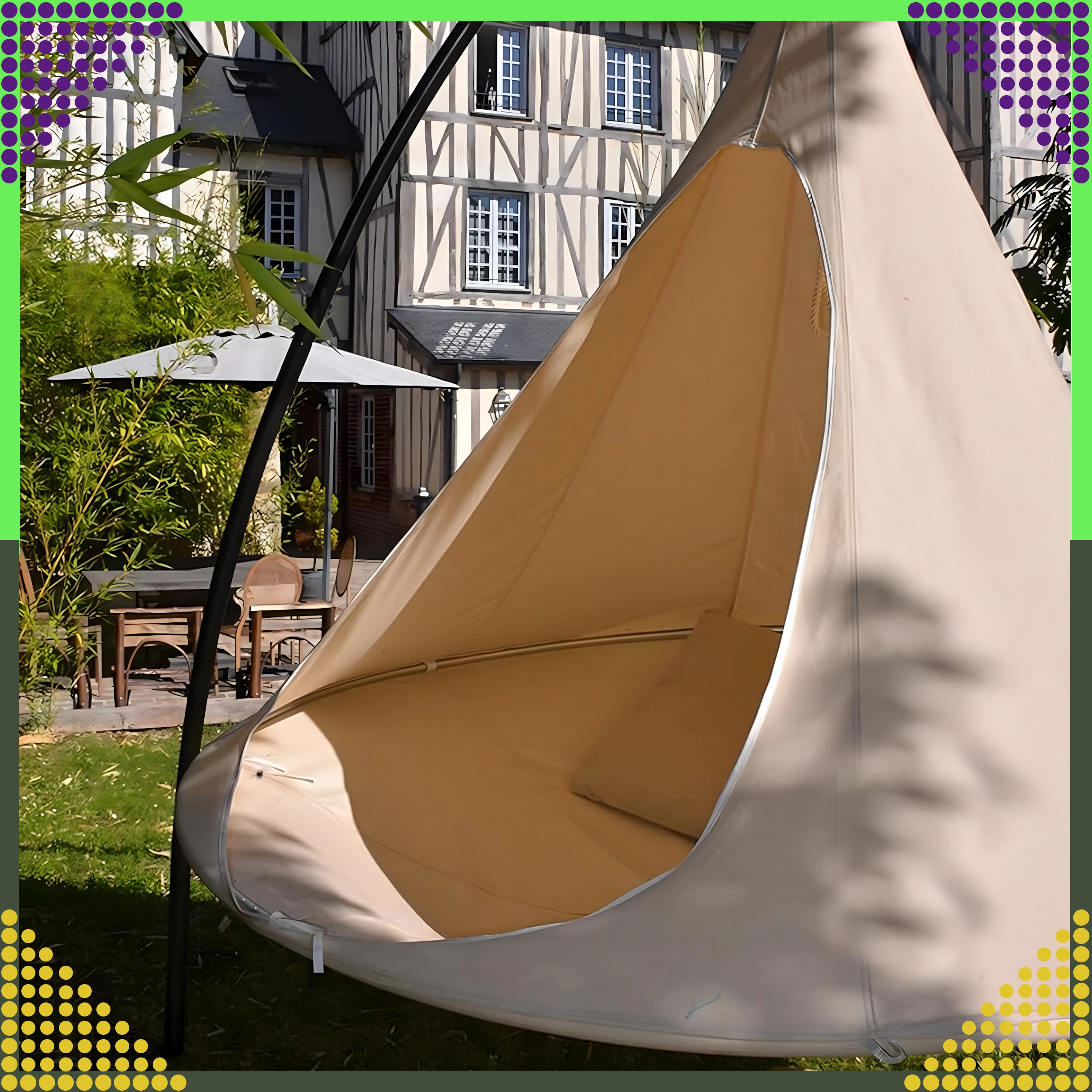 Ciesz się idealnym wypoczynkiem w wiszącym hamaku typu kokon, który łączy stylowy design, solidną konstrukcję i maksymalny komfort. Ten przytulny „kokon” jest idealny do ogrodu, na taras, balkon oraz do wnętrz, a dzięki udźwigowi 150 kg ucieszy dzieci i dorosłych. Oddychający materiał i łatwa pielęgnacja sprawiają, że to świetne miejsce do relaksu przez cały rok.