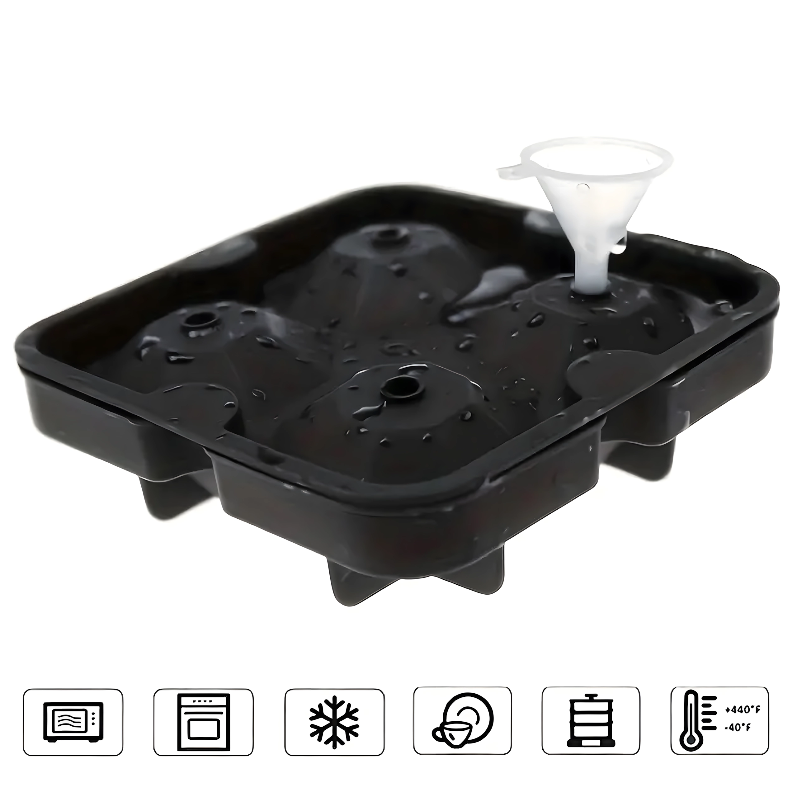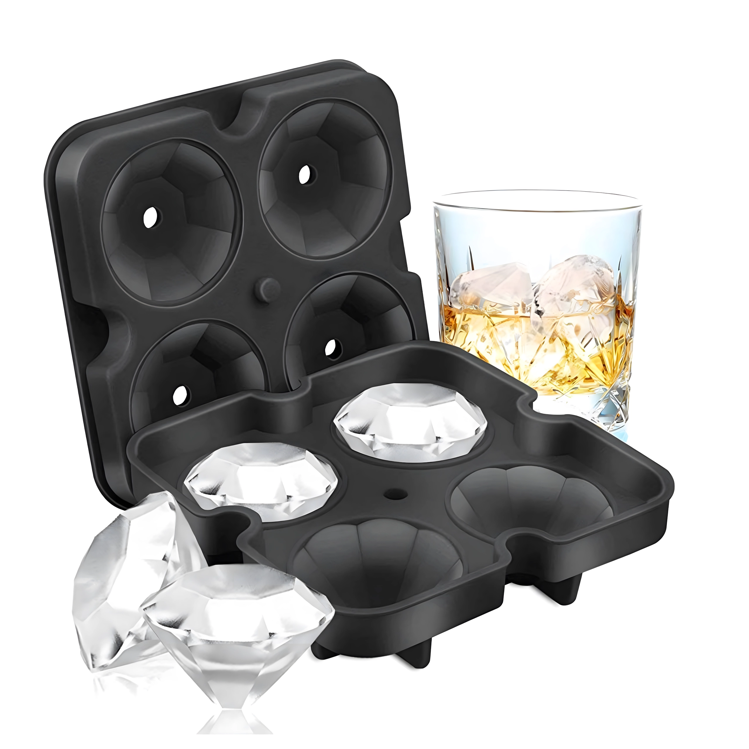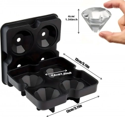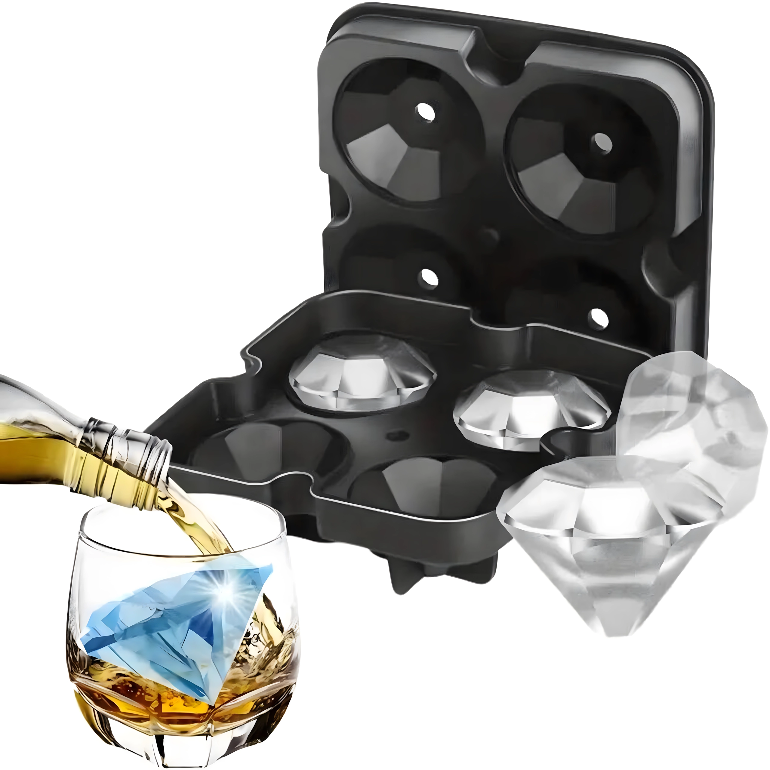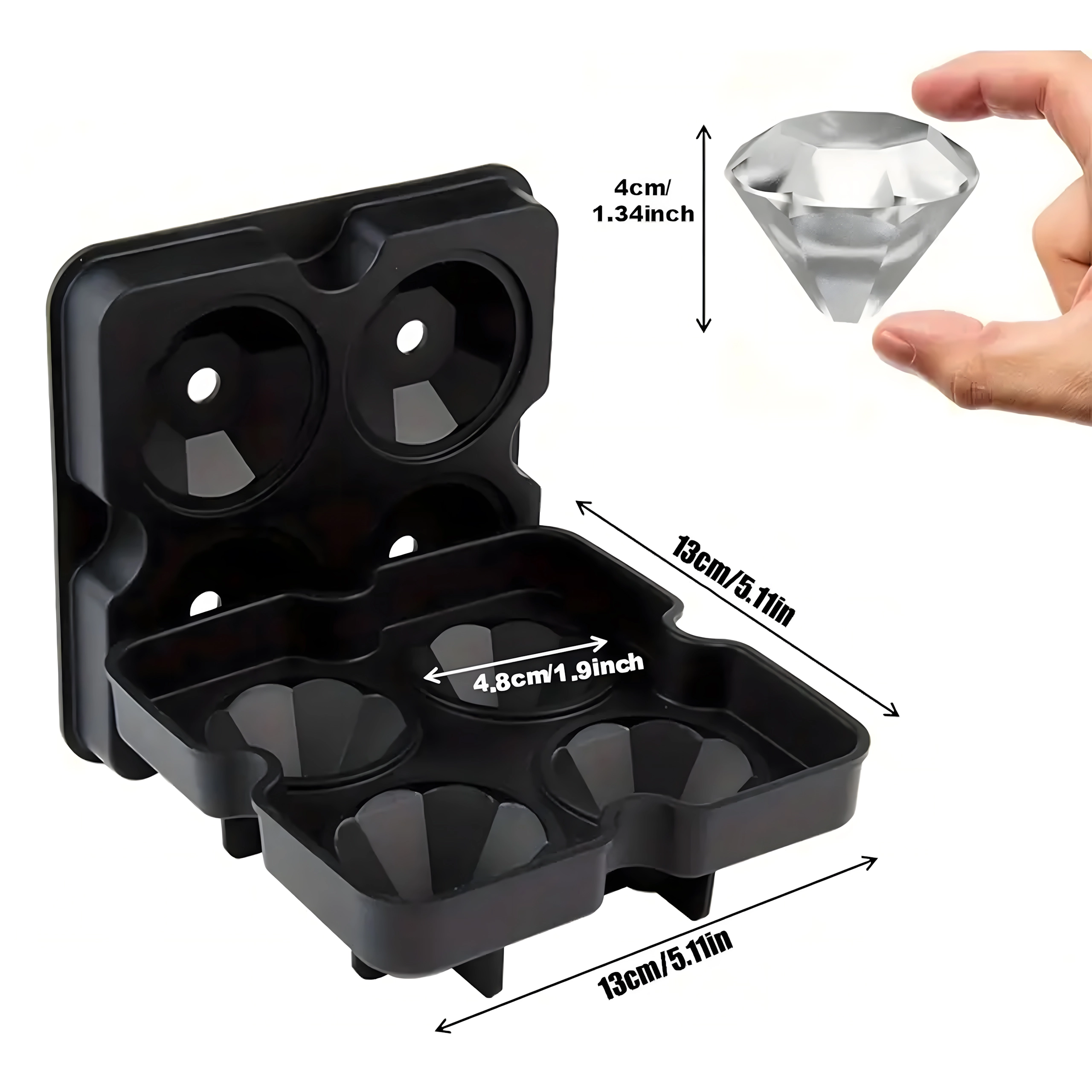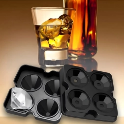 Twórz efektowne lodowe diamenty dzięki praktycznej silikonowej formie XL na 4 sztuki. Jest trwała, elastyczna i łatwa do wyjmowania, więc nie musisz wyłamywać ani łamać lodu. Świetna do whisky, koktajli i napojów bezalkoholowych, a także do czekolady czy galaretki. Materiał jest bezpieczny dla żywności, a forma nadaje się do zamrażarki, piekarnika i zmywarki.