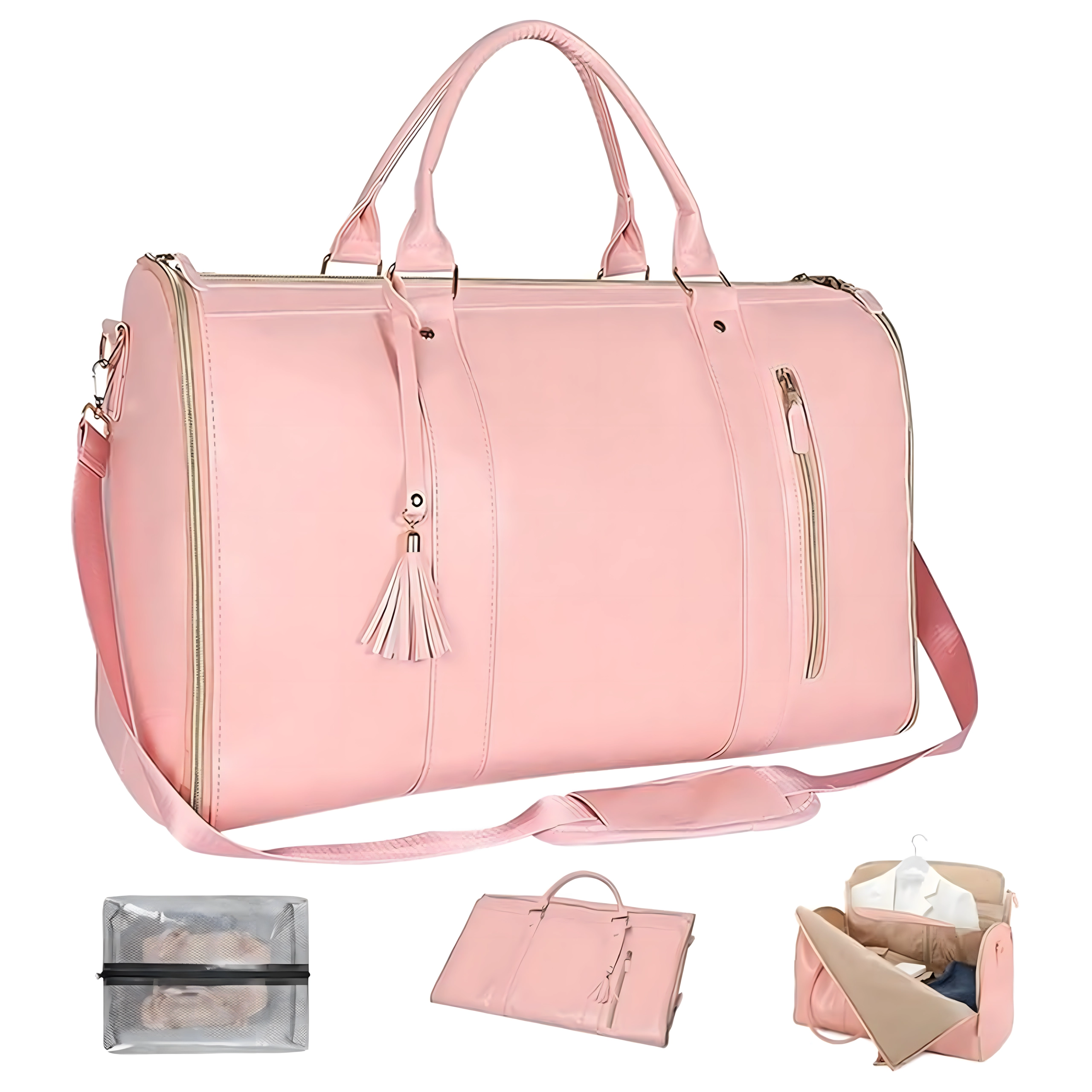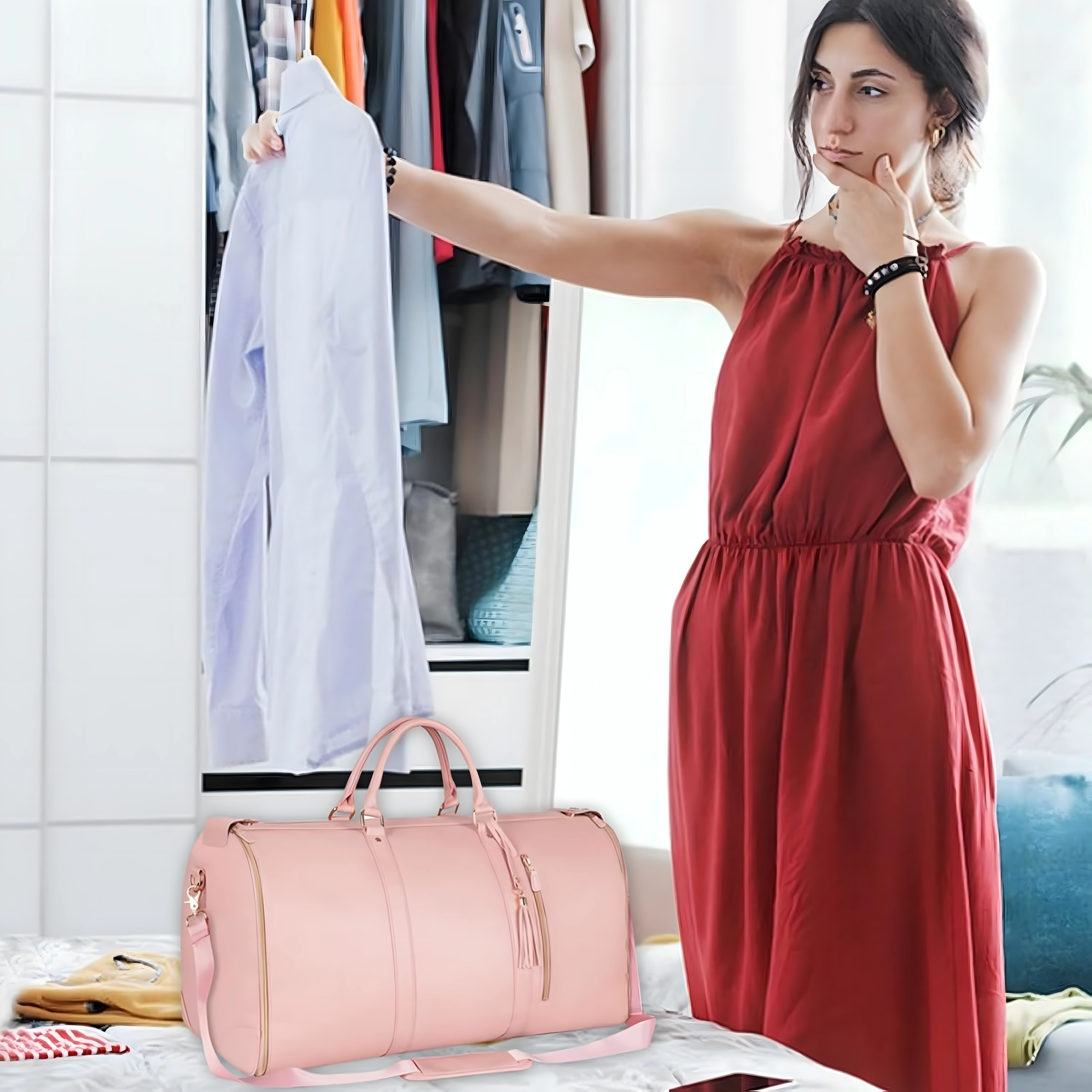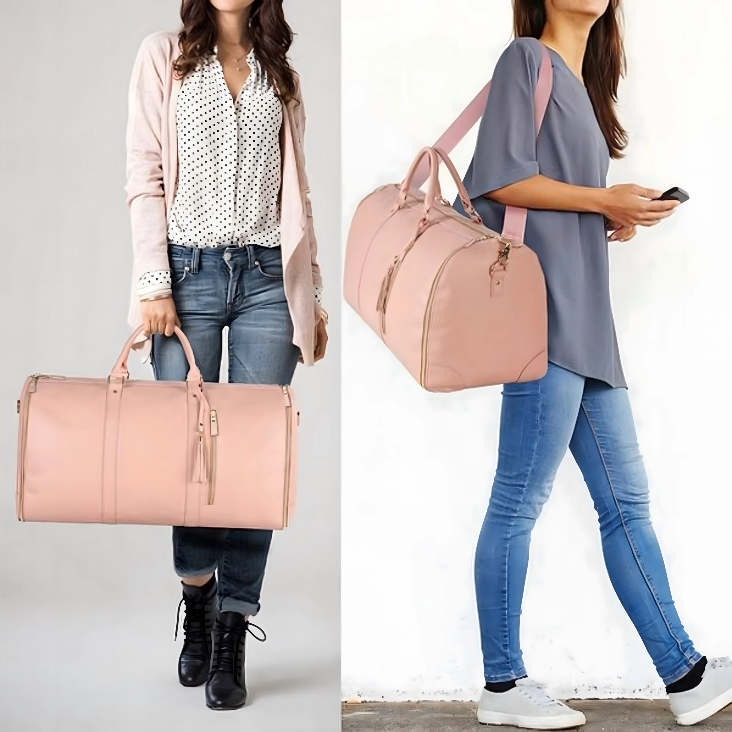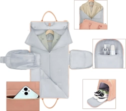 Ta elegancka torba podróżna 2w1 rozkłada się do praktycznego pokrowca na garnitur, sukienkę lub marynarkę, który chroni przed zagnieceniami. Po złożeniu tworzy pojemną torbę weekender/duffel z pomysłowymi kieszeniami na obuwie, kosmetyki i drobiazgi. Wytrzymały i wodoodporny materiał zapewnia długą żywotność i spokój w podróży.