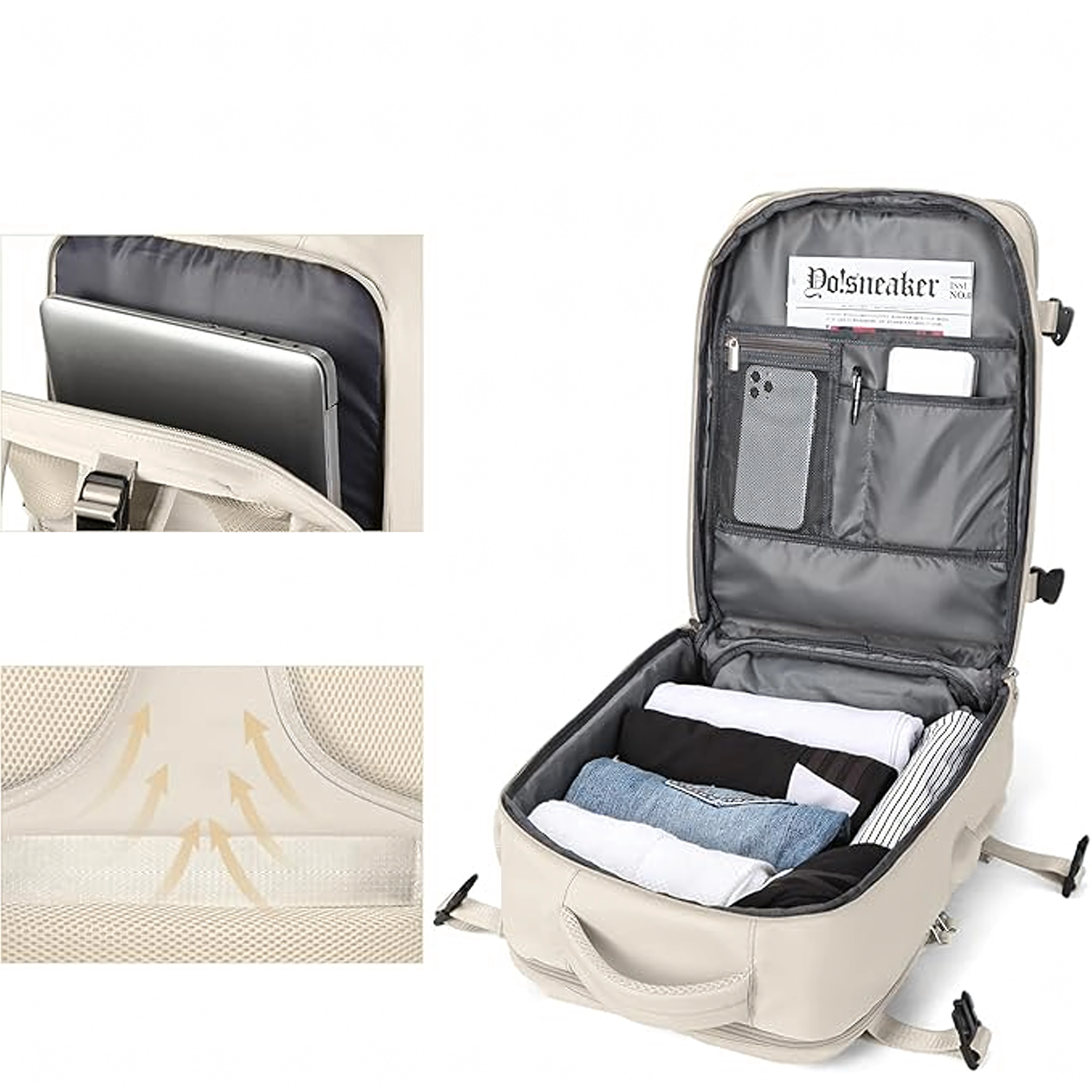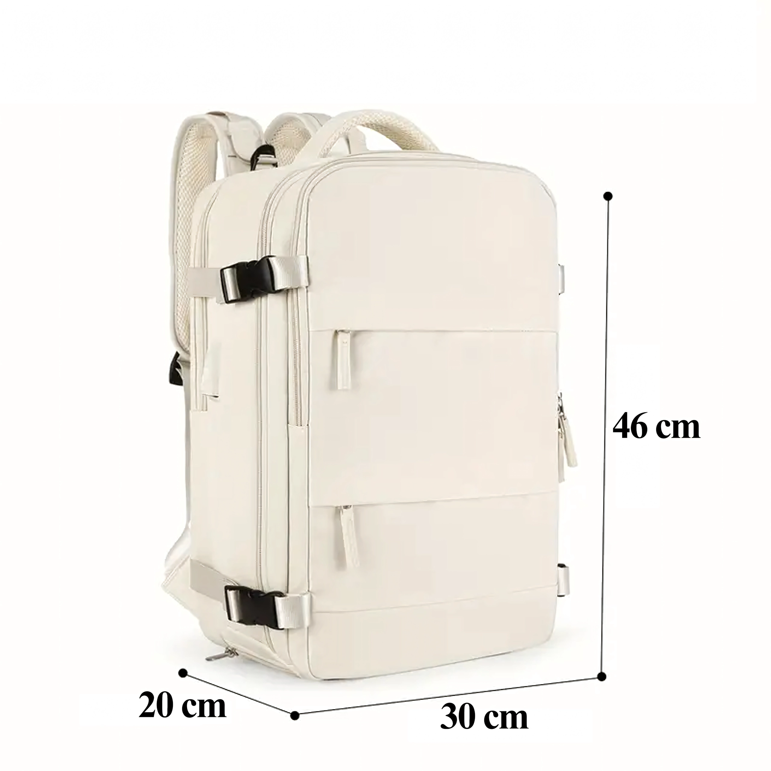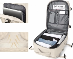 Ten uniwersalny kabinowy plecak łączy wygodę, funkcjonalność i nowoczesny wygląd. Dzięki wymiarom 46 × 30 × 20 cm nadaje się do większości tanich linii lotniczych i bez problemu posłuży jako bagaż podręczny. Trwały, wodoodporny materiał chroni Twoje rzeczy w każdą pogodę, a przemyślany podział wnętrza utrzymuje wszystko w przejrzystym porządku.