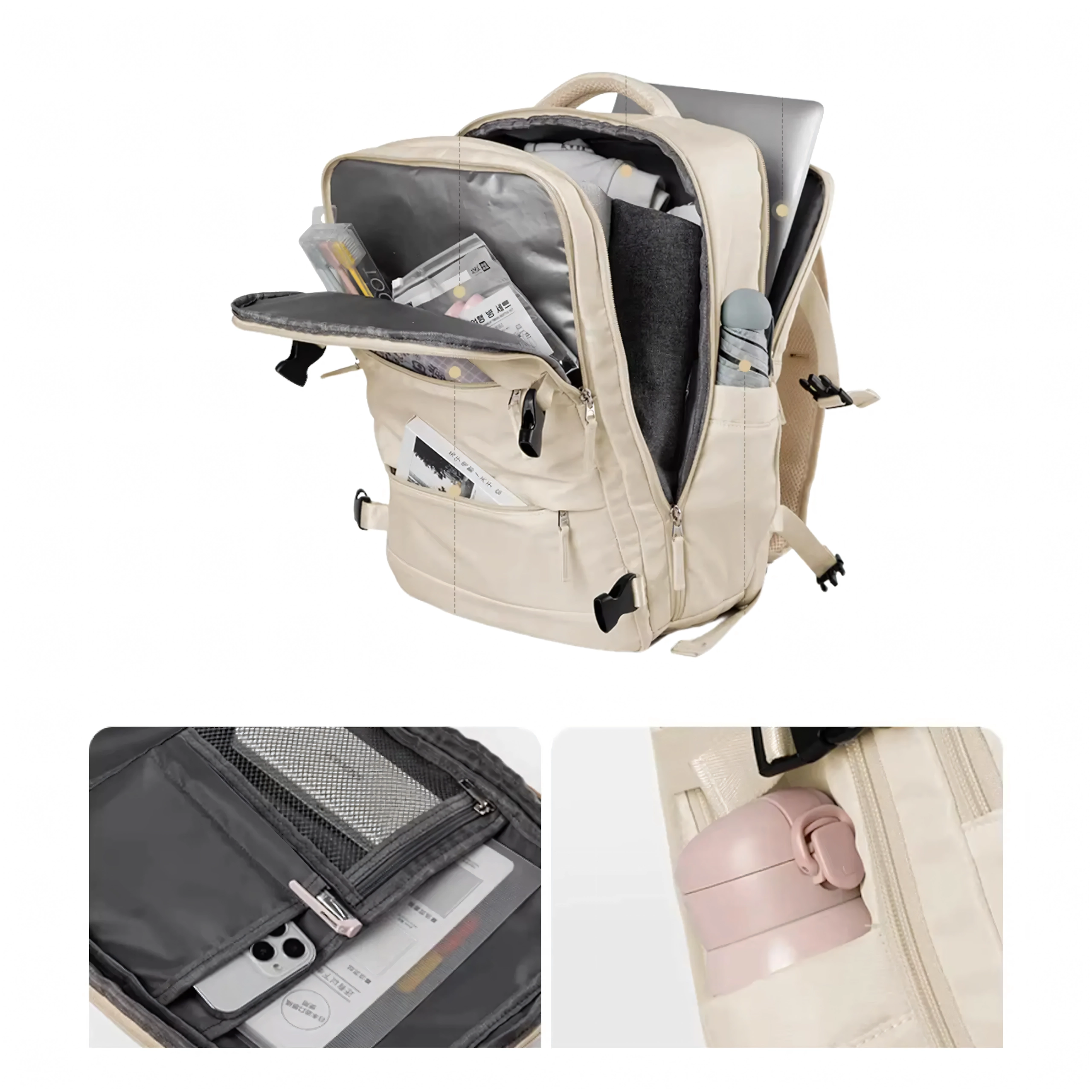 Główna komora rozsuwa się jak walizka, dzięki czemu łatwo spakujesz ubrania i akcesoria. Kieszenie siatkowe i zapinane na zamek utrzymują wszystko na swoim miejscu.