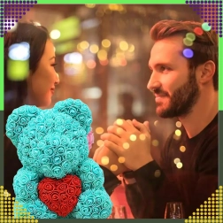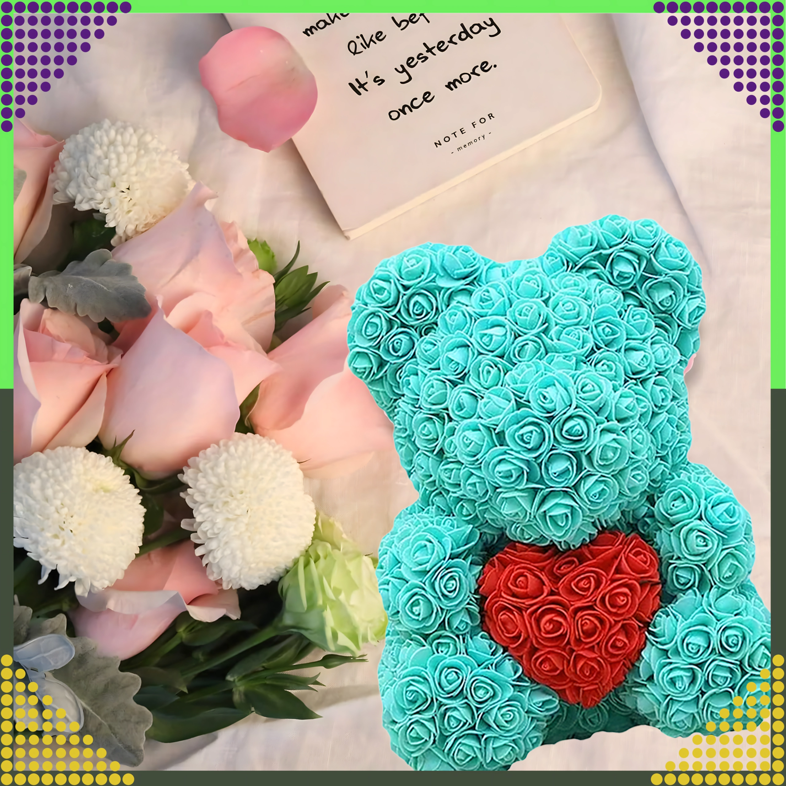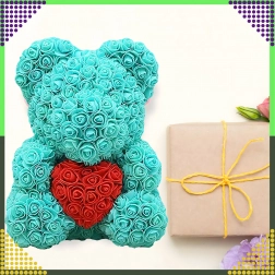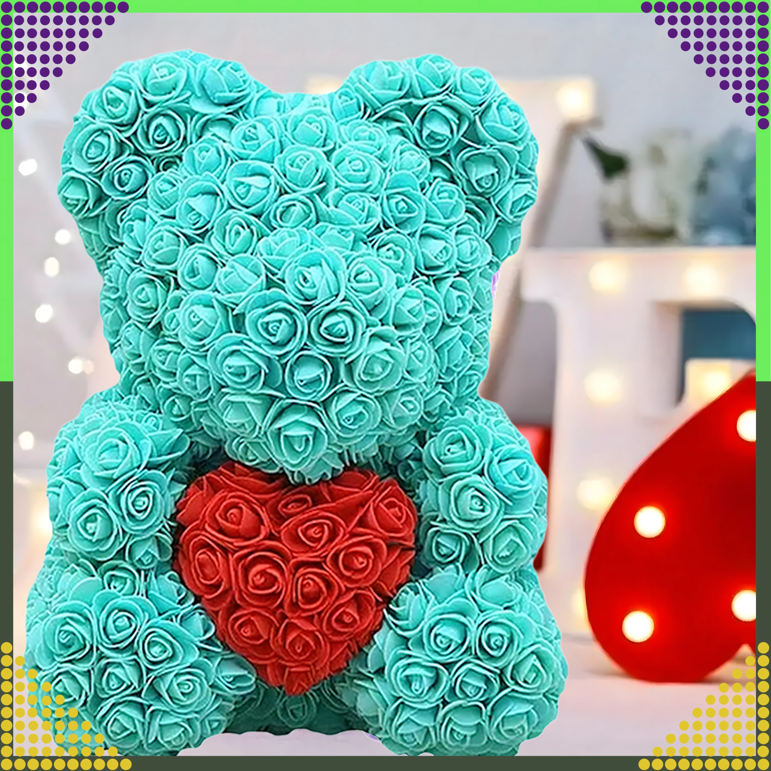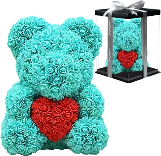 Elegancki miś z róż o wysokości 40 cm to niezapomniany romantyczny prezent dla partnerki, mamy lub babci. Wykonany z delikatnych piankowych róż, które nigdy nie zwiędną, dzięki czemu stanowi trwałą dekorację i symbol miłości na Walentynki oraz inne wyjątkowe okazje.