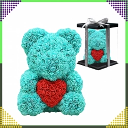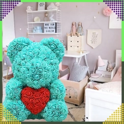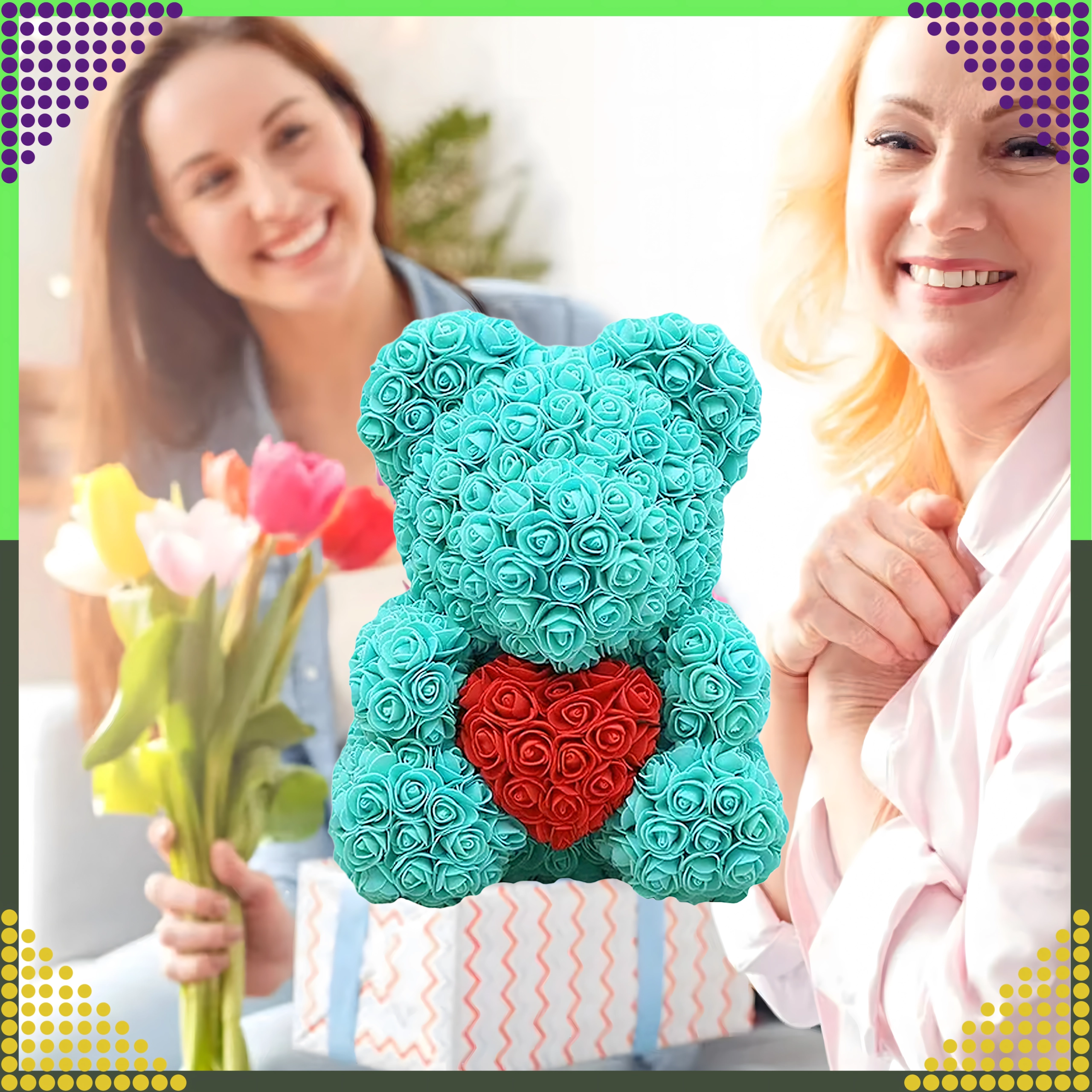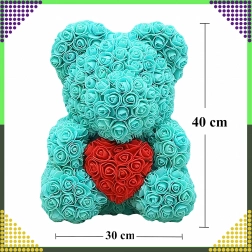 Podaruj emocje w pięknym wydaniu. Miś z róż jest ręcznie składany z wielu piankowych kwiatów, które zachowują swój kształt i kolor. Dzięki temu to stylowa i trwała dekoracja do sypialni, salonu lub na odświętny stół.