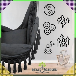 Wiszący brazylijski fotel to świetny wybór do relaksu w domu i na zewnątrz. Lekka, a jednocześnie solidna konstrukcja oraz przyjemnie oddychająca tkanina zapewniają wygodę podczas czytania, odpoczynku i delikatnego bujania, które sprzyja rozluźnieniu całego ciała. Eleganckie czarne wykończenie łatwo dopasujesz do wnętrz w stylu boho oraz nowoczesnych przestrzeni na zewnątrz.