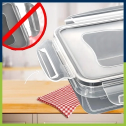 Zatrzaskowe pokrywki z silikonową uszczelką chronią żywność przed wysychaniem i zapobiegają wyciekom płynów podczas przenoszenia.