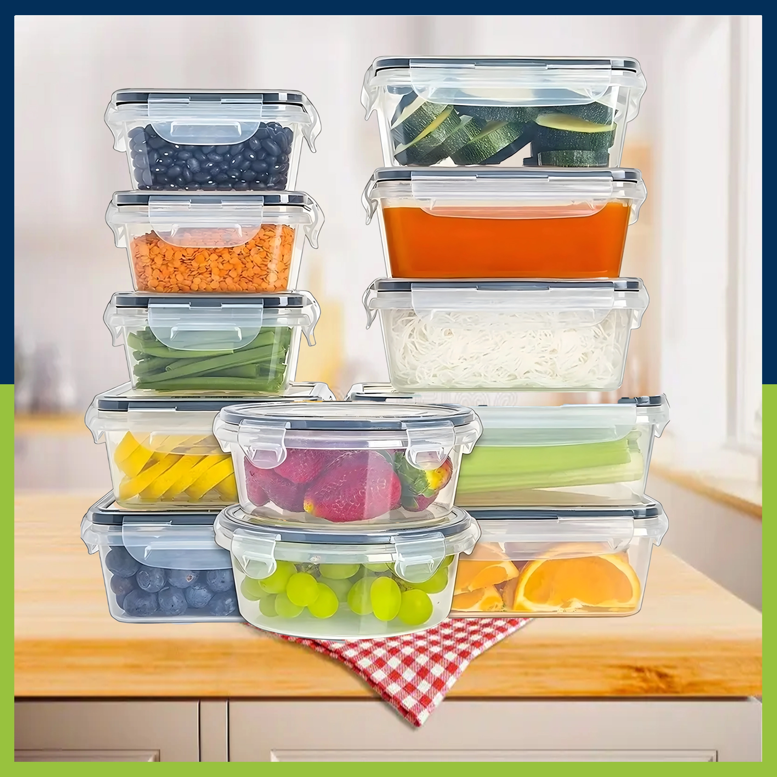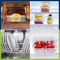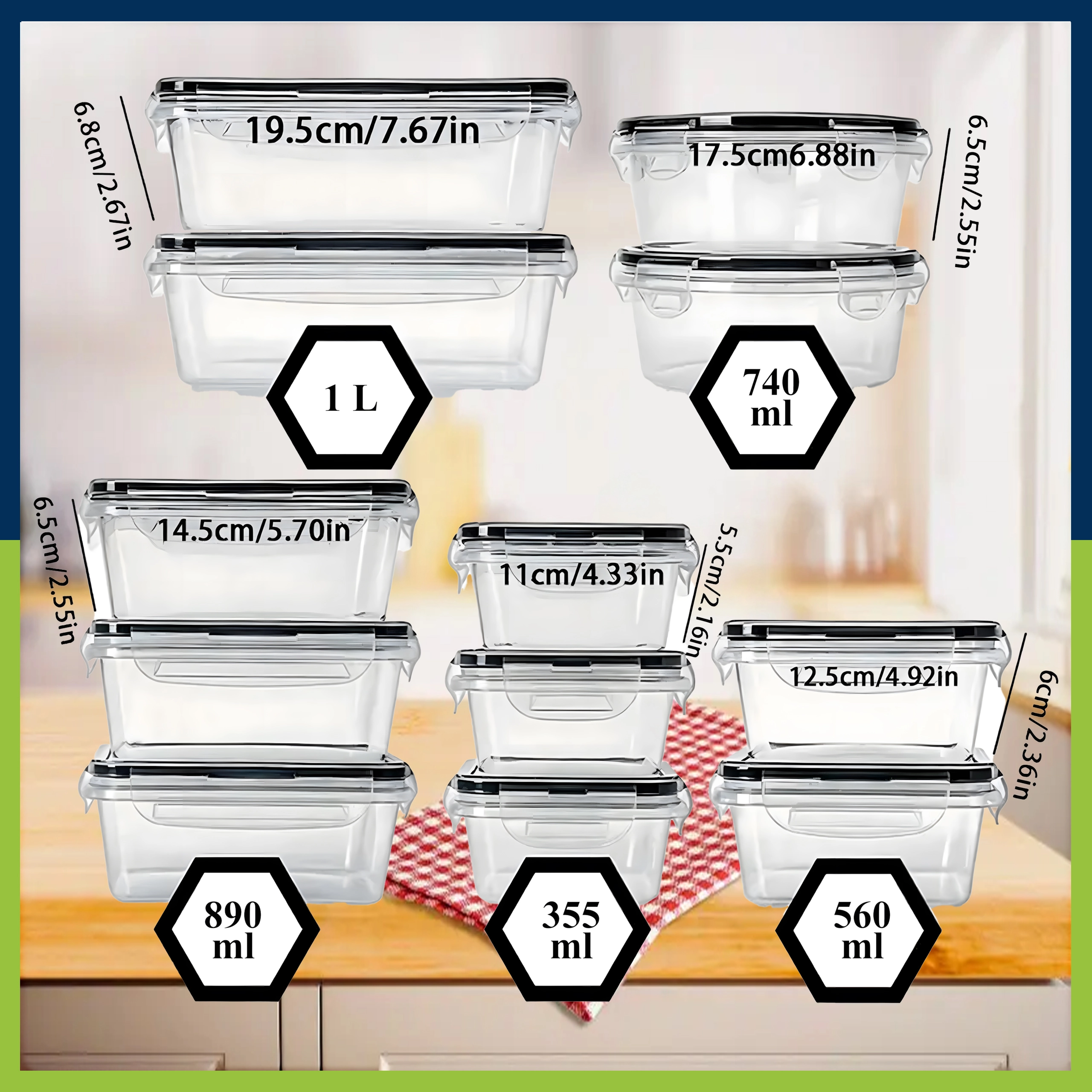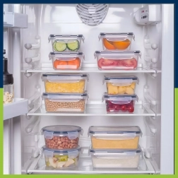 Ten wszechstronny zestaw zawiera małe i większe pojemniki na przekąski, owoce, warzywa, resztki posiłków oraz przygotowanie meal prepu. Przezroczyste ścianki ułatwiają szybkie rozpoznanie zawartości, a solidne pokrywki z zatrzaskami zapewniają niezawodną szczelność przeciw wyciekom płynów i zapachów.