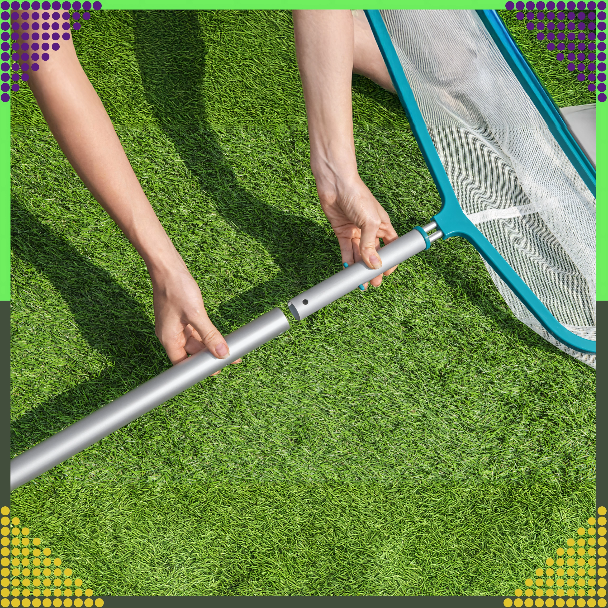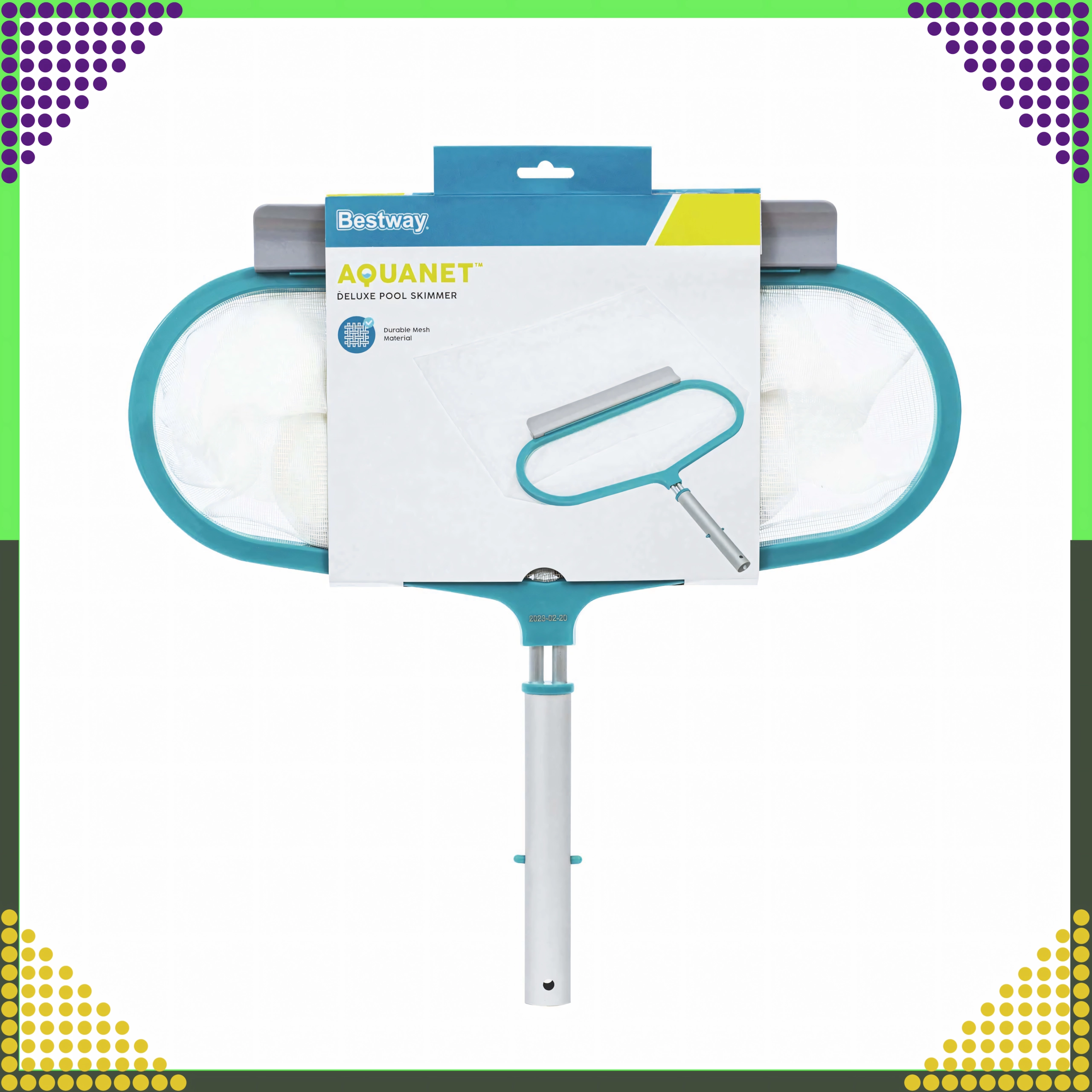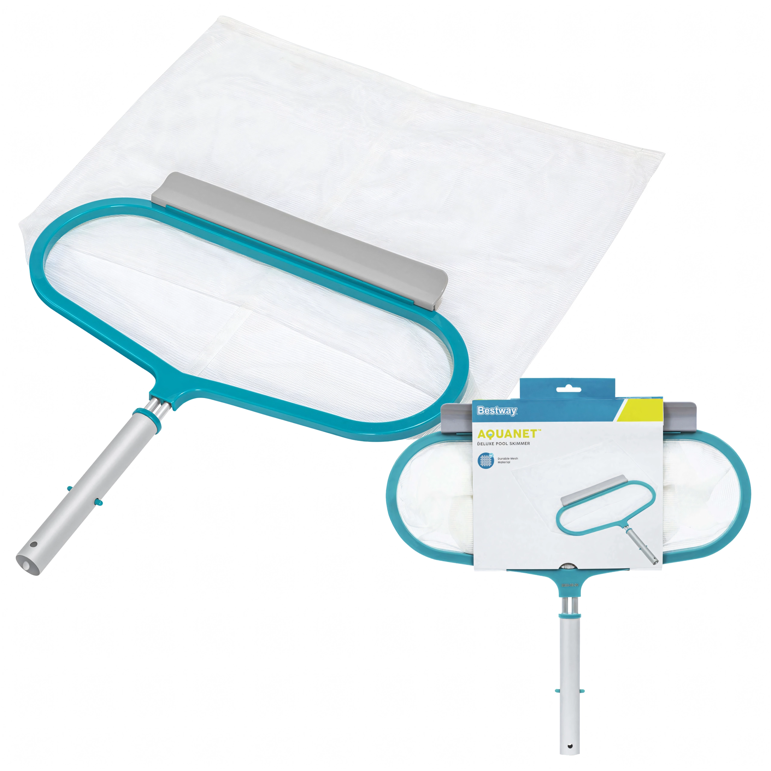 Utrzymuj wodę krystalicznie czystą dzięki wysokiej jakości siatce basenowej Bestway AquaNet Deluxe. Dzięki wymiarom 50 × 48 × 2,8 cm i solidnej aluminiowej ramie szybko wyłapuje liście oraz drobne zanieczyszczenia. Wytrzymała siatka i kompatybilność z teleskopowym kijem 30 mm zapewniają wygodne i skuteczne czyszczenie każdego basenu.