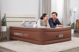 Skorzystaj z pełnowartościowego snu dzięki dwuosobowemu dmuchanemu łóżku BESTWAY ALWAYZAIRE. Inteligentna technologia AlwayzAire na bieżąco monitoruje i koryguje ciśnienie, dzięki czemu materac pozostaje stabilny i przyjemnie jędrny bez uciążliwego dopompowywania w nocy. Wbudowana elektryczna pompa (220–240 V) zapewnia szybkie napompowanie w około 3 minuty oraz równie łatwe spuszczenie powietrza po użyciu.