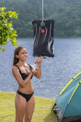 Dzięki pojemności 20 litrów zapewnia wystarczającą ilość wody na kilka krótkich pryszniców. Prysznic ma wzmocnione zawieszenie do bezpiecznego mocowania na gałęzi, haku lub linie oraz wąż prysznicowy z końcówką dla wygodnej regulacji przepływu. Po opróżnieniu składa się na płasko i nie zajmuje miejsca w plecaku.
