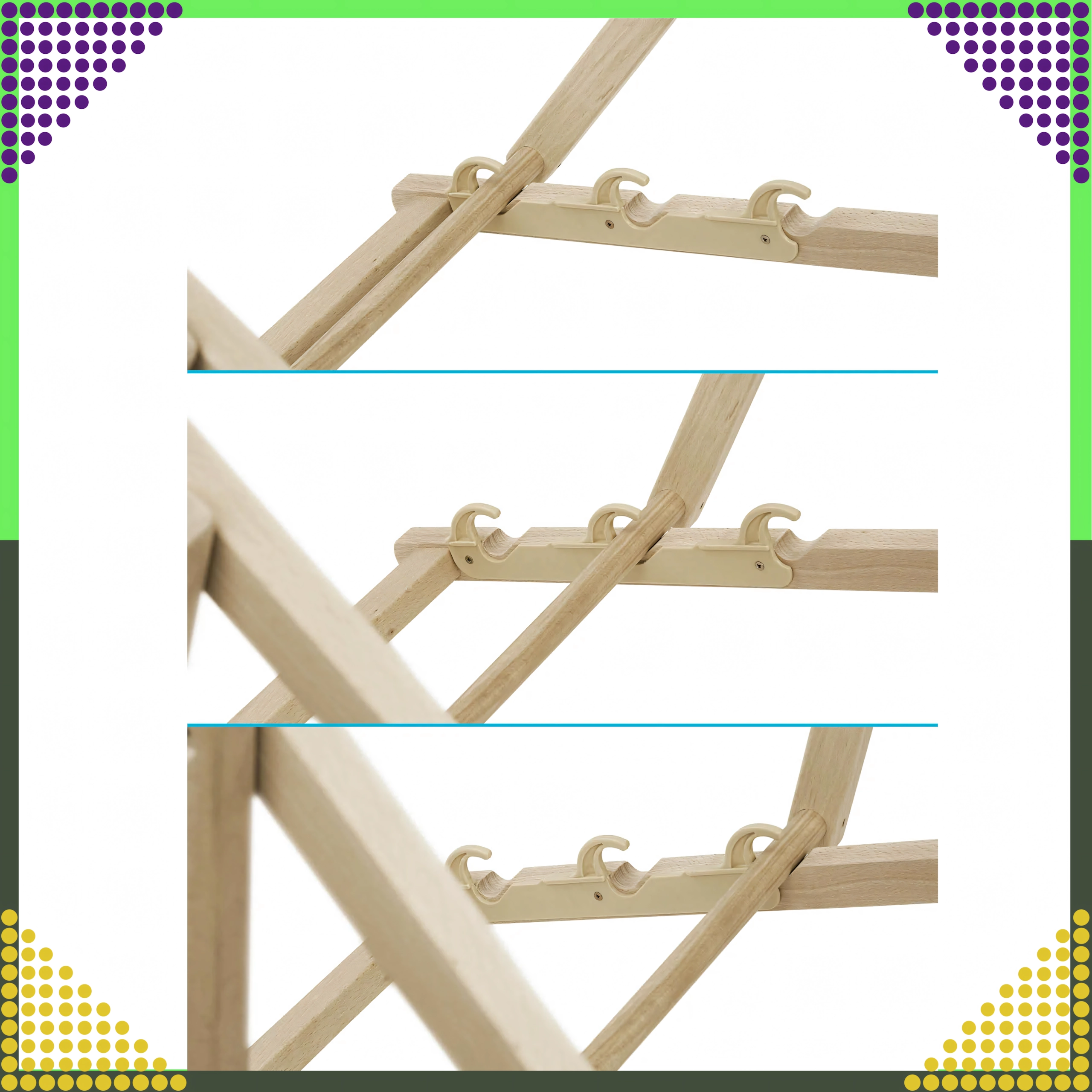 Wytrzymała rama z naturalnego drewna łatwo się składa, co zapewnia wygodne przenoszenie i przechowywanie w domu oraz w podróży.
