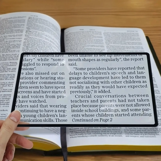 Praktyczna lupa stronicowa z elastycznym plastikowym arkuszem soczewki powiększa tekst i detale nawet o 200%. Dzięki cienkiej konstrukcji z lekką ramką wygodnie leży w dłoni, możesz położyć ją bezpośrednio na stronie i czytać bez męczenia oczu.