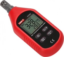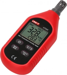 UNI‑T UT333 to praktyczny miernik do szybkiej kontroli mikroklimatu. Mierzy temperaturę w zakresie −10 do 60 °C oraz wilgotność 0–100% RH z dokładnością odpowiednią do codziennego i profesjonalnego użytku. Kompaktowa obudowa, niska masa i podświetlany wyświetlacz zapewniają wygodę także w gorszych warunkach oświetleniowych.