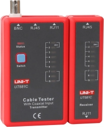 UT681C obsługuje kable ethernetowe, telefoniczne i koncentryczne. Dzięki adapterowi RJ45–BNC z łatwością sprawdzisz również tory koncentryczne – od ciągłości po mapowanie żył.