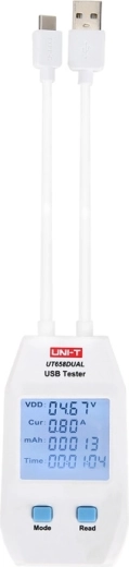 Tester UNI-T UT658DUAL zapewnia kompletny podgląd parametrów ładowania dla nowoczesnych urządzeń. Na jednym ekranie obserwujesz U/I/P, pojemność (mAh), energię (Wh) oraz rezystancję obwodu (Ω). Dzięki szerokiemu zakresowi 4–24 V DC i prądowi do 3 A (USB-A) / 5 A (USB-C) łatwo przetestujesz ładowarki, kable i powerbanki.