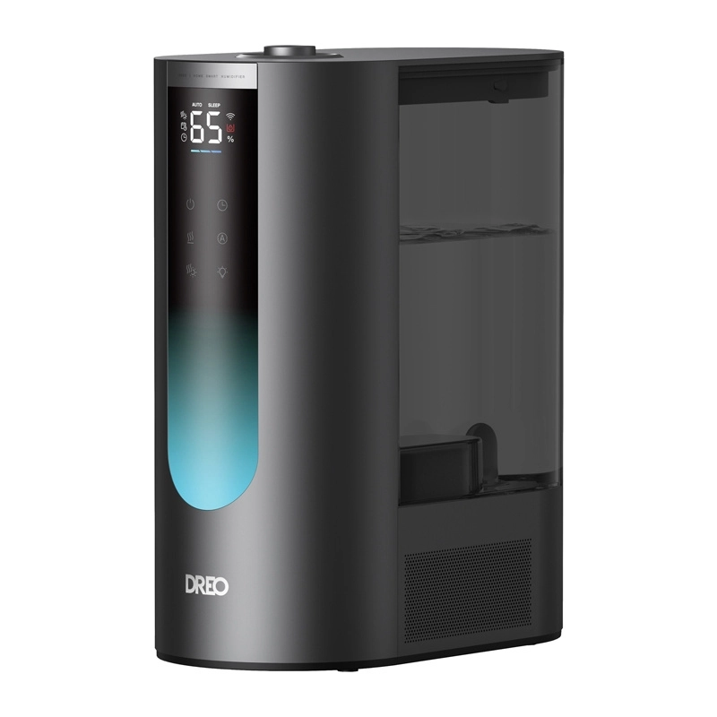 Wydajny nawilżacz powietrza Dreo z 6‑litrowym zbiornikiem zapewnia do 45 godzin nieprzerwanej pracy i nawilżanie do 500 ml/h. Oferuje ciepłą i chłodną mgiełkę, cichy tryb nocny 28 dB, automatyczną regulację wilgotności 30–90%, sterowanie w aplikacji oraz wsparcie dla Google Home i Amazon Alexa. Dzięki górnemu napełnianiu, wyświetlaczowi LED i możliwości dodawania olejków eterycznych idealnie sprawdzi się w sypialni, salonie i pokoju dziecięcym.