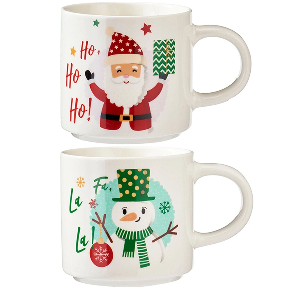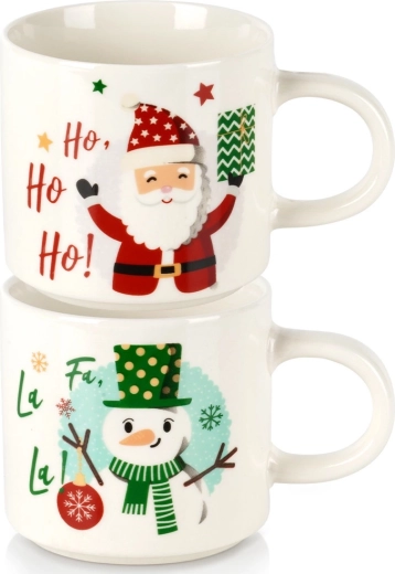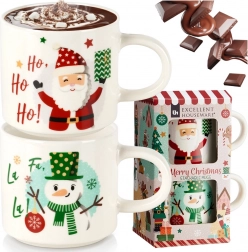 Stylowy zestaw dwóch świątecznych kubków z wysokiej jakości porcelany w białym kolorze rozświetli każdy zimowy dzień. Kubki z radosnymi motywami MIKOŁAJA i bałwanka są idealne do codziennego użytku i odświętnych chwil przy stole. Dzięki ergonomicznemu uchu wygodnie leżą w dłoni i świetnie sprawdzają się do gorących napojów.