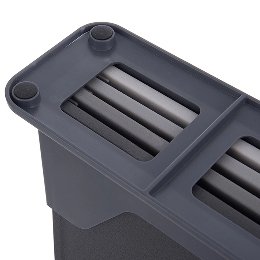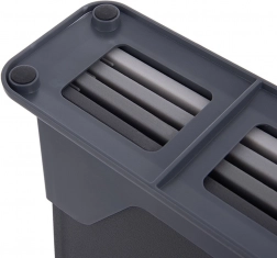 Kompaktowy stojak z wyprofilowanymi rowkami utrzymuje deski w pozycji pionowej, ma piankowe podkładki przeciw przesuwaniu i chroni blat przed zarysowaniami.