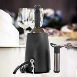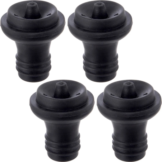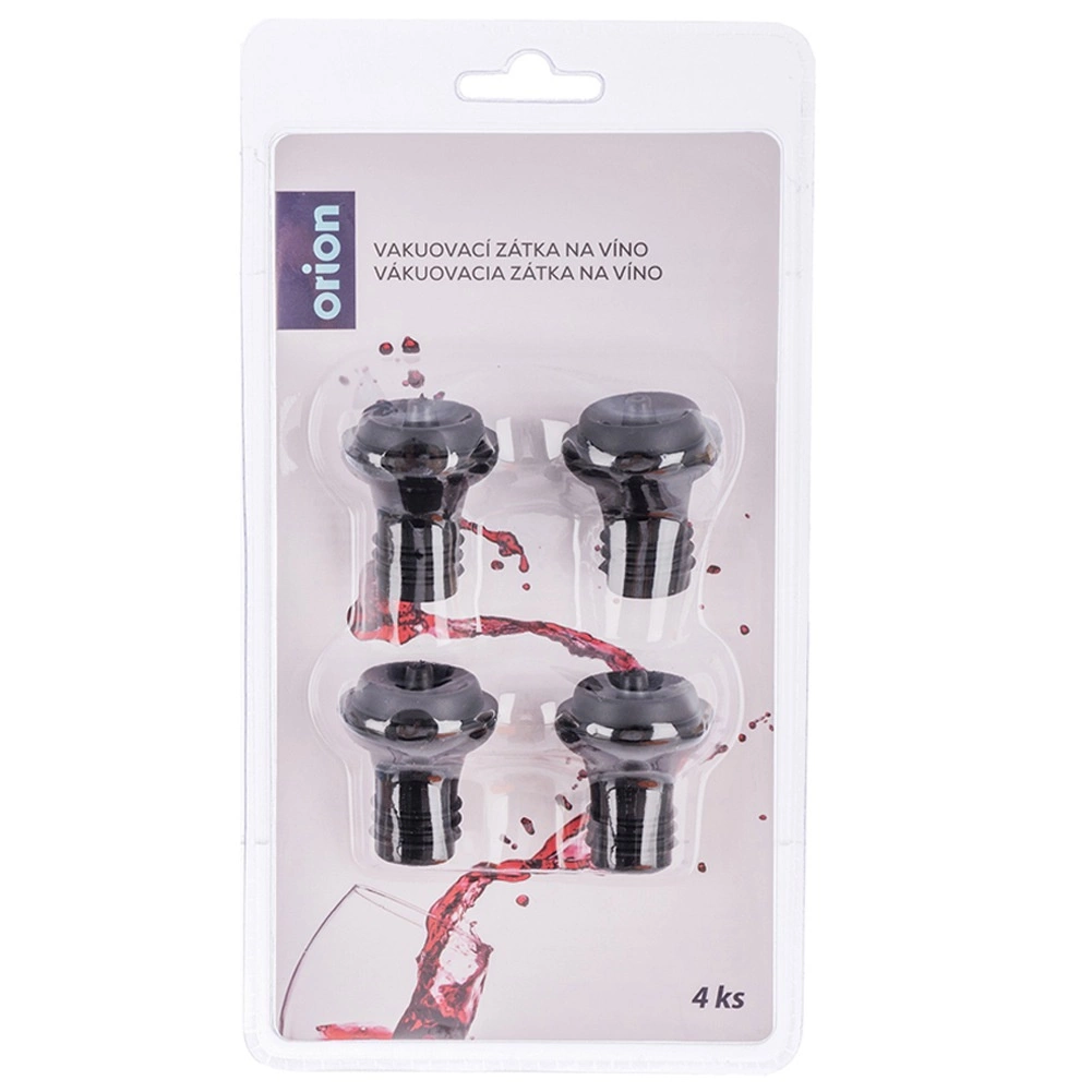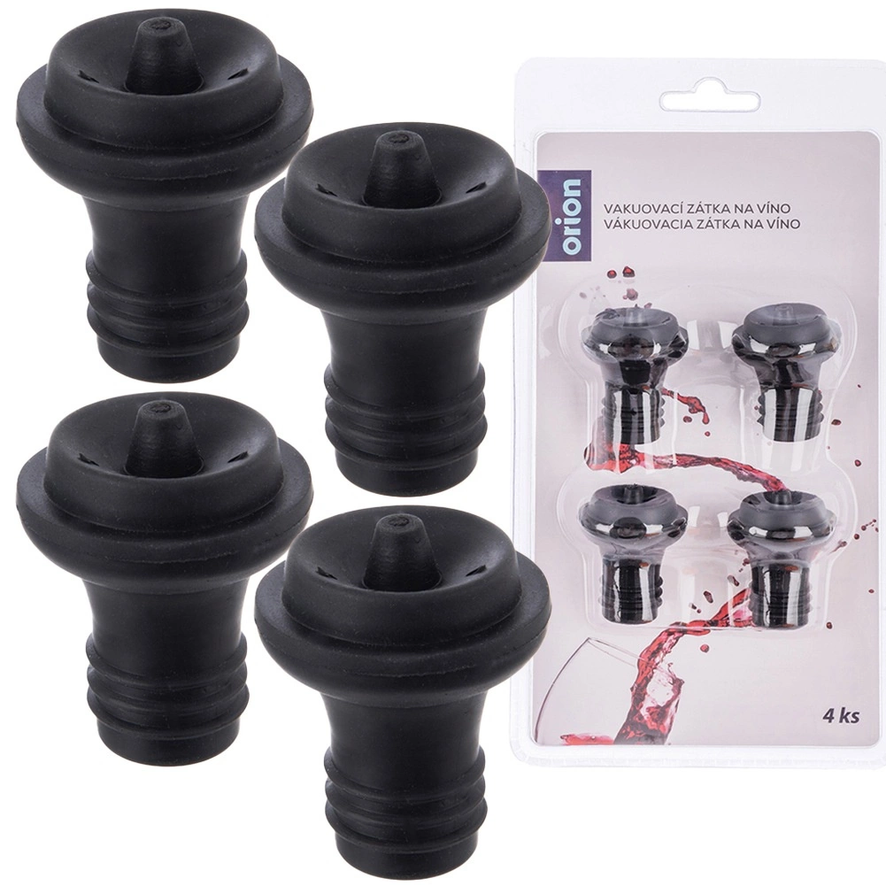 Zestaw czterech próżniowych korków to idealny wybór dla każdego, kto po otwarciu butelki chce przedłużyć świeżość napoju. Po odessaniu powietrza za pomocą ręcznej lub elektrycznej pompki próżniowej proces utleniania zostaje wyraźnie spowolniony, dzięki czemu wino i soki dłużej zachowują pełny smak i zapach. Korki są wykonane z wytrzymałego plastiku w eleganckim czarnym kolorze i są wygodne w użyciu oraz czyszczeniu.