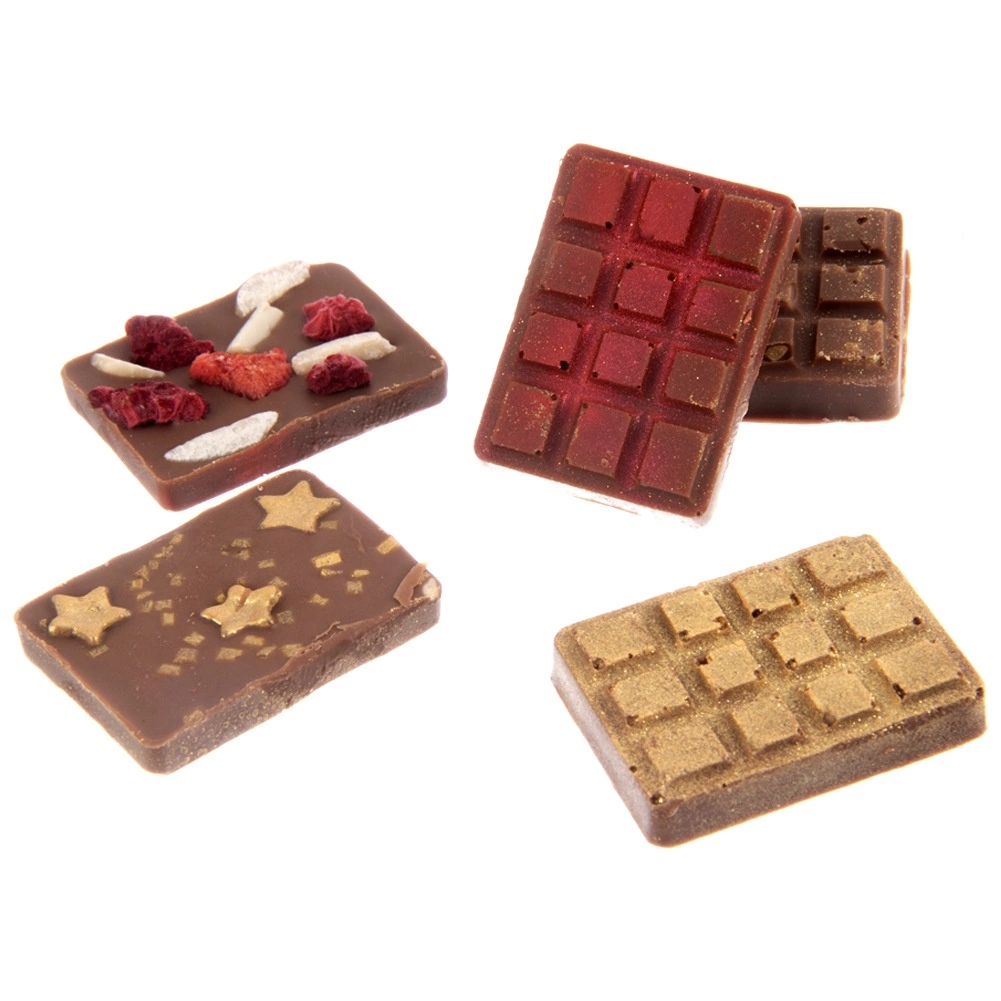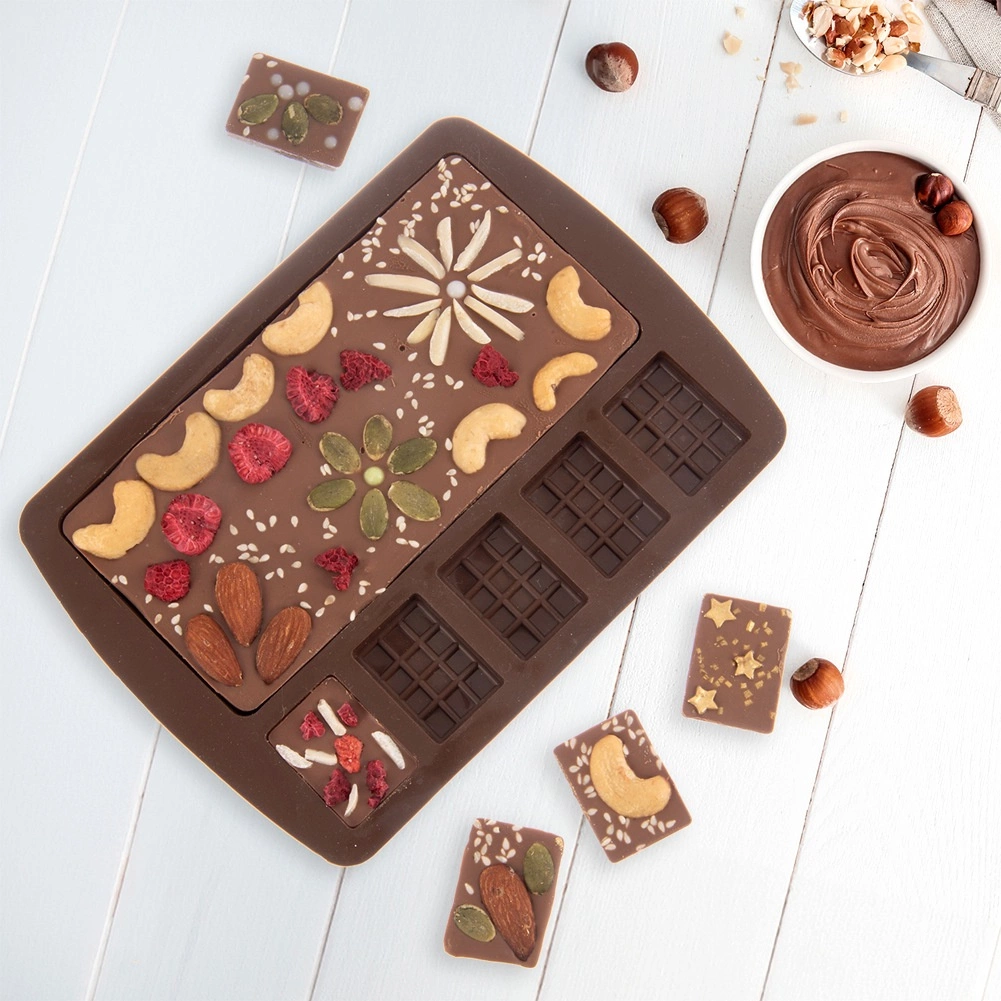 Forma oferuje sprytny podział: odlewa jedną dużą tabliczkę i pięć mini tabliczek do degustacji, na prezenty lub przekąski.