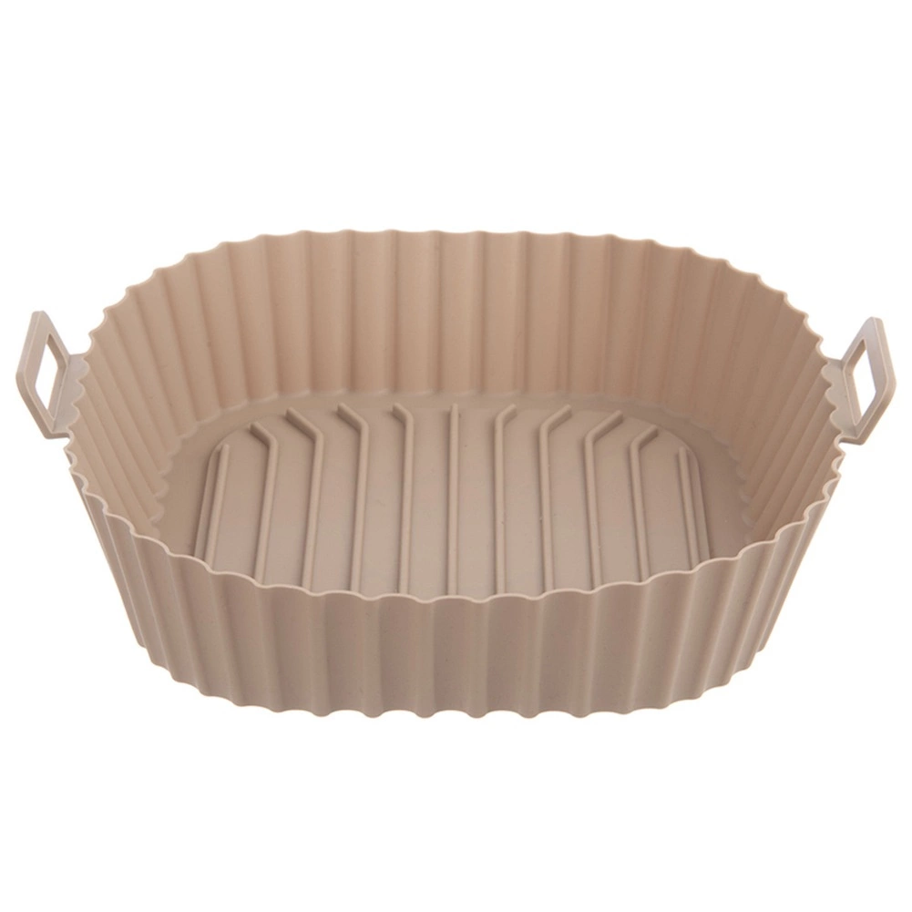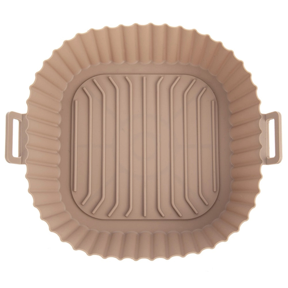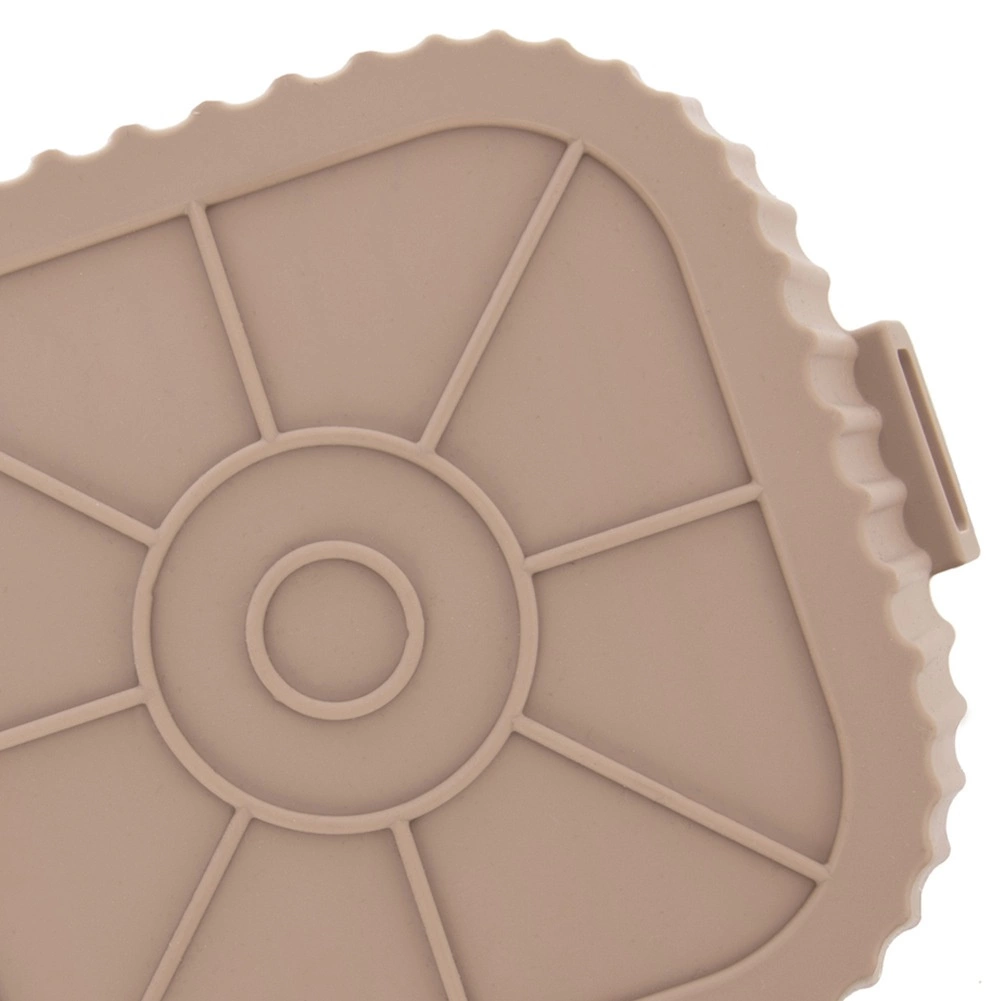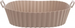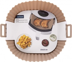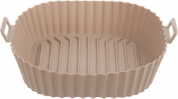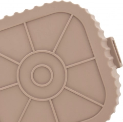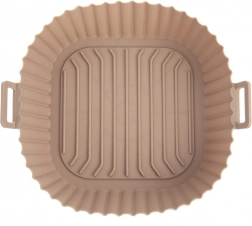 Beżowy silikonowy wkład do Air Fryera o wymiarach 22 × 22 × 7 cm (dno 18 × 18 cm) chroni wnętrze frytownicy przed resztkami jedzenia i ułatwia pielęgnację. Nieprzywierająca powierzchnia zapobiega przypalaniu, a dzięki zintegrowanym uchwytom wkład łatwo włożyć i wyjąć.