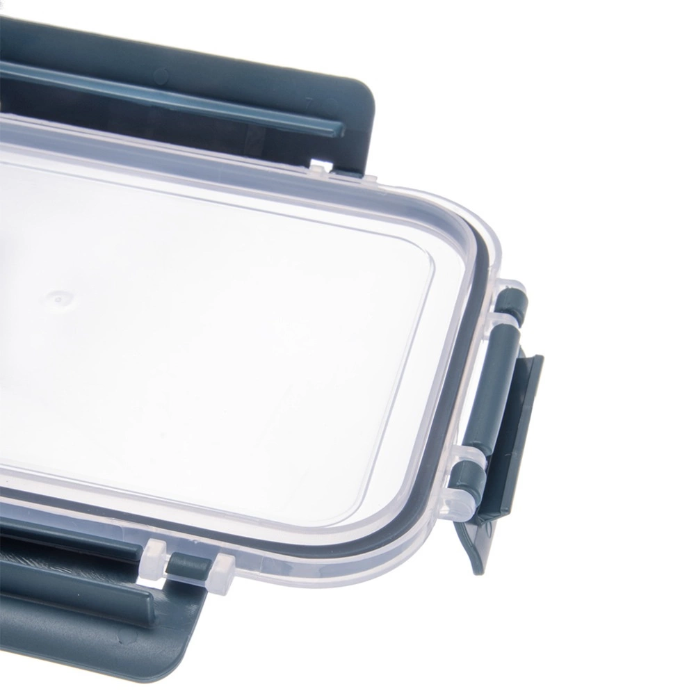 Solidne zatrzaskowe zamknięcia oraz silikonowa uszczelka utrzymują świeżość i zapobiegają wyciekom płynów – idealne do lodówki i w podróż.