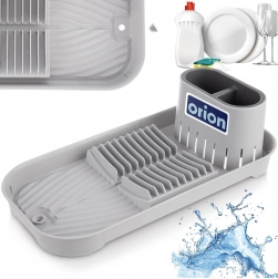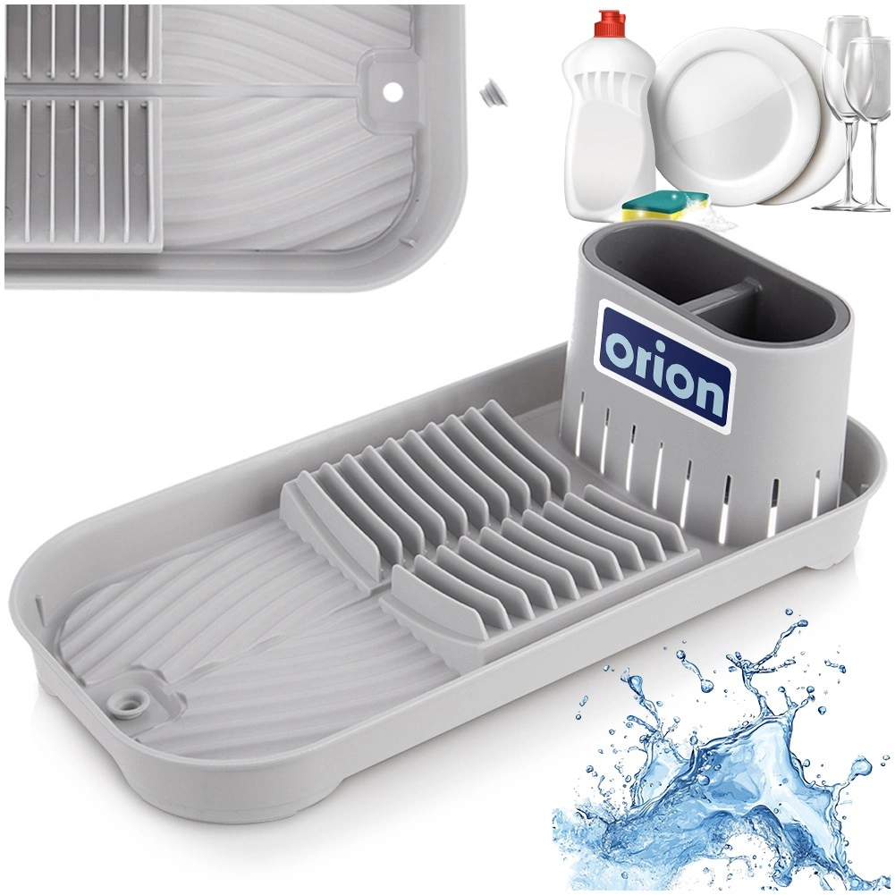 Dolna część z rowkowaną powierzchnią i wbudowanym odpływem z zamknięciem skutecznie odprowadza wodę, więc nie potrzebujesz dodatkowej tacki. Elementy antypoślizgowe zapewniają stabilność i zapobiegają przesuwaniu się podczas użytkowania. Ociekacz wykonany jest z wytrzymałego plastiku w szarym kolorze, łatwy w utrzymaniu i gotowy do codziennego użytku.