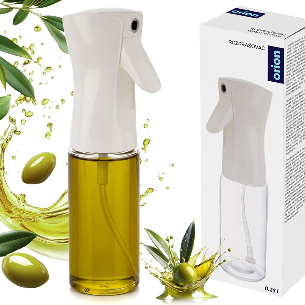 Praktyczny szklany rozpylacz o pojemności 250 ml do równomiernego dozowania oleju, octu i innych płynnych przypraw. Dzięki delikatnej mgle zapewnia precyzyjne nanoszenie, oszczędność surowców oraz czystą pracę w kuchni. Przezroczysty pojemnik umożliwia kontrolę zawartości, a ergonomiczny spust gwarantuje wygodne użytkowanie i łatwe czyszczenie.