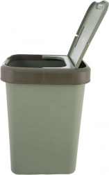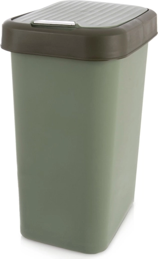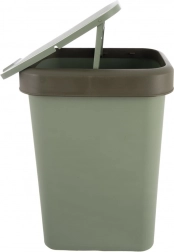 Wytrzymały i lekki kosz z wysokiej jakości plastiku w zielonym odcieniu zapewnia czysty wygląd i łatwą pielęgnację. Składana pokrywa z ruchomą klapką umożliwia wrzucanie odpadów z różnych stron, jednocześnie ograniczając rozprzestrzenianie się nieprzyjemnych zapachów. Dzięki smukłemu kształtowi kosz dobrze mieści się także w mniejszych przestrzeniach.