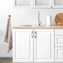 Po przyklejeniu pozostaw haczyki na 72 godziny bez obciążenia, aby klej trwale połączył się z podłożem. Przed montażem dokładnie oczyść i odtłuść powierzchnię. Sprawdzą się w łazience na ręczniki i myjki, w kuchni na ściereczki czy rękawice kuchenne oraz w przedpokoju na lżejszą odzież i dodatki.