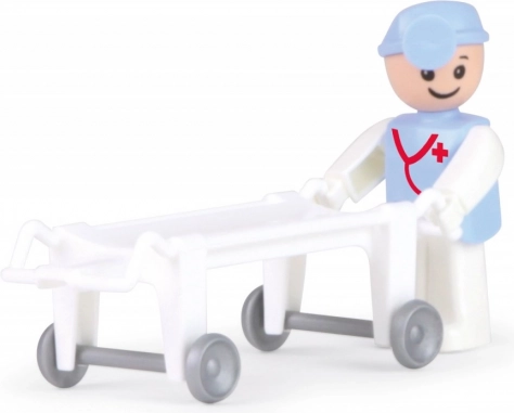 Kompletny zestaw z ruchomą figurką i noszami na kółkach wspiera rozwój wyobraźni i odgrywanie roli małego ratownika.