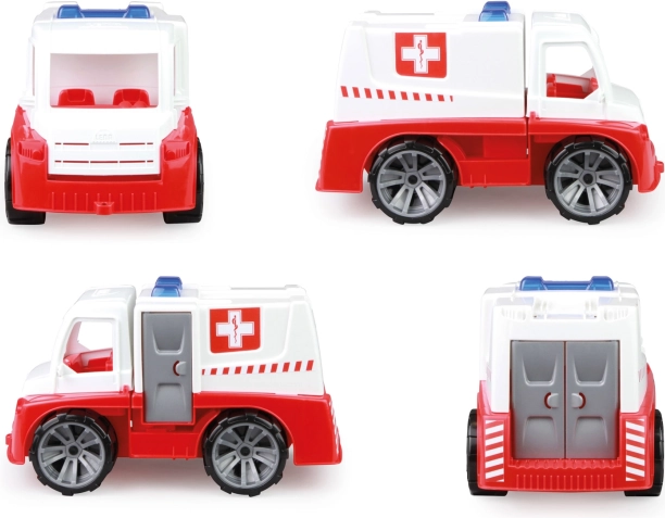Solidna plastikowa karetka LENA TRUXX dla małych ratowników oferuje mechaniczne działanie, otwierane drzwi i uchylną kabinę. W zestawie jest figurka ratownika oraz nosze dla realistycznej zabawy. Długość 29 cm, odpowiednia od 2 lat, idealna na piasek i do domu, bez baterii.