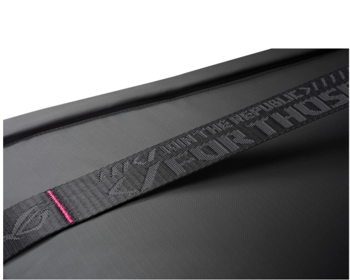 Praktyczna przednia kieszeń na zamek pomieści ładowarkę, kable i drobne akcesoria. Przemyślane detale, takie jak wysokiej jakości zamki z pullerami i subtelne elementy ROG, podkreślają premium charakter i codzienną użyteczność.