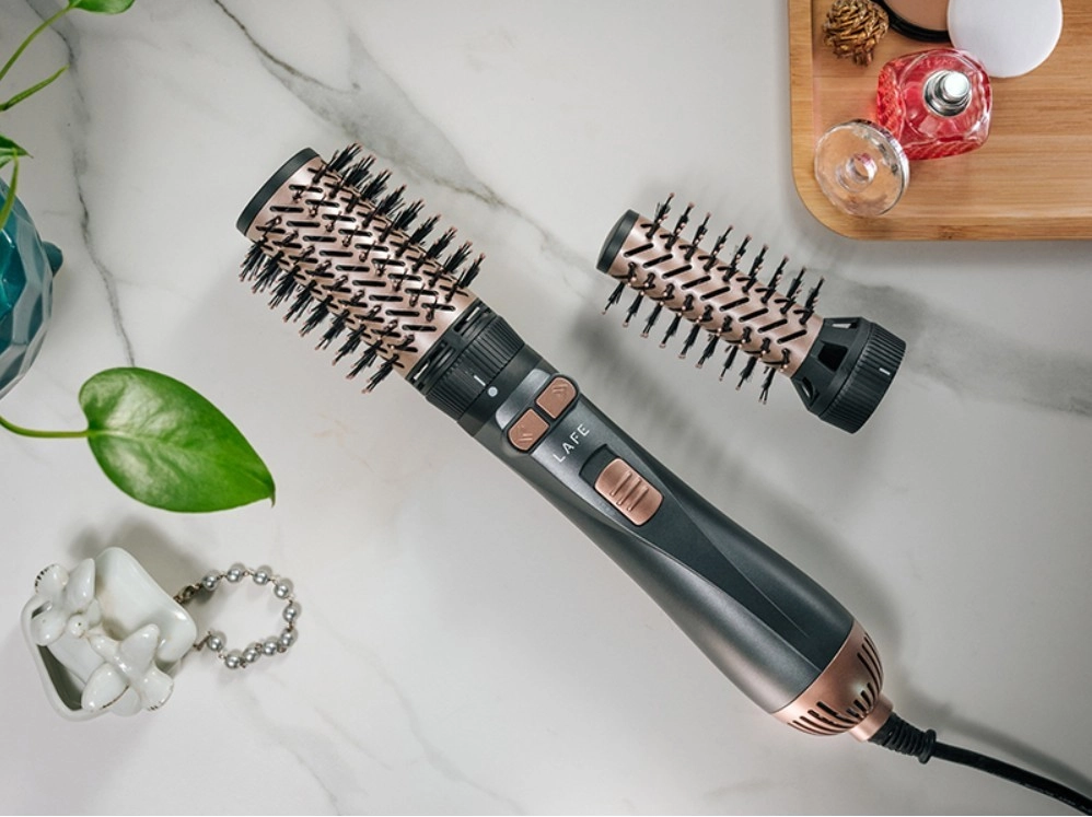 LAFE Sleek & Shine Styler to wszechstronna obrotowa suszarko-szczotka zaprojektowana do wygodnego domowego suszenia i modelowania. Łączy suszenie i stylizację w jednym kroku, oszczędzając czas, a jednocześnie wspiera zdrowy wygląd włosów dzięki technologii jonizacji, która ogranicza elektryzowanie i pozostawia fryzurę gładką oraz lśniącą.