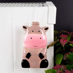 Uroczy ceramiczny nawilżacz na kaloryfer w kształcie krówki pomaga utrzymać przyjemną wilgotność powietrza w sezonie grzewczym. Dzięki prostemu zawieszeniu na haczyku i kompaktowym wymiarom jest idealny do pokoju dziecięcego, sypialni i salonu. Ceramiczne wykonanie z błyszczącą glazurą jest nie tylko funkcjonalne, ale też dekoracyjne.