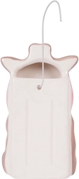 Wykonany z wysokiej jakości ceramiki w delikatnych beżowych i różowych tonach z czarnymi akcentami. Metalowy haczyk zapewnia stabilne mocowanie do żeber kaloryfera. Minimalistyczny i figlarny wygląd pasuje do większości wnętrz, szczególnie do pokojów dziecięcych.