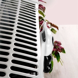 Ciepło z grzejnika zapewnia delikatne odparowywanie wody i podnosi wilgotność w pomieszczeniu, co korzystnie wpływa na drogi oddechowe i domowy komfort.