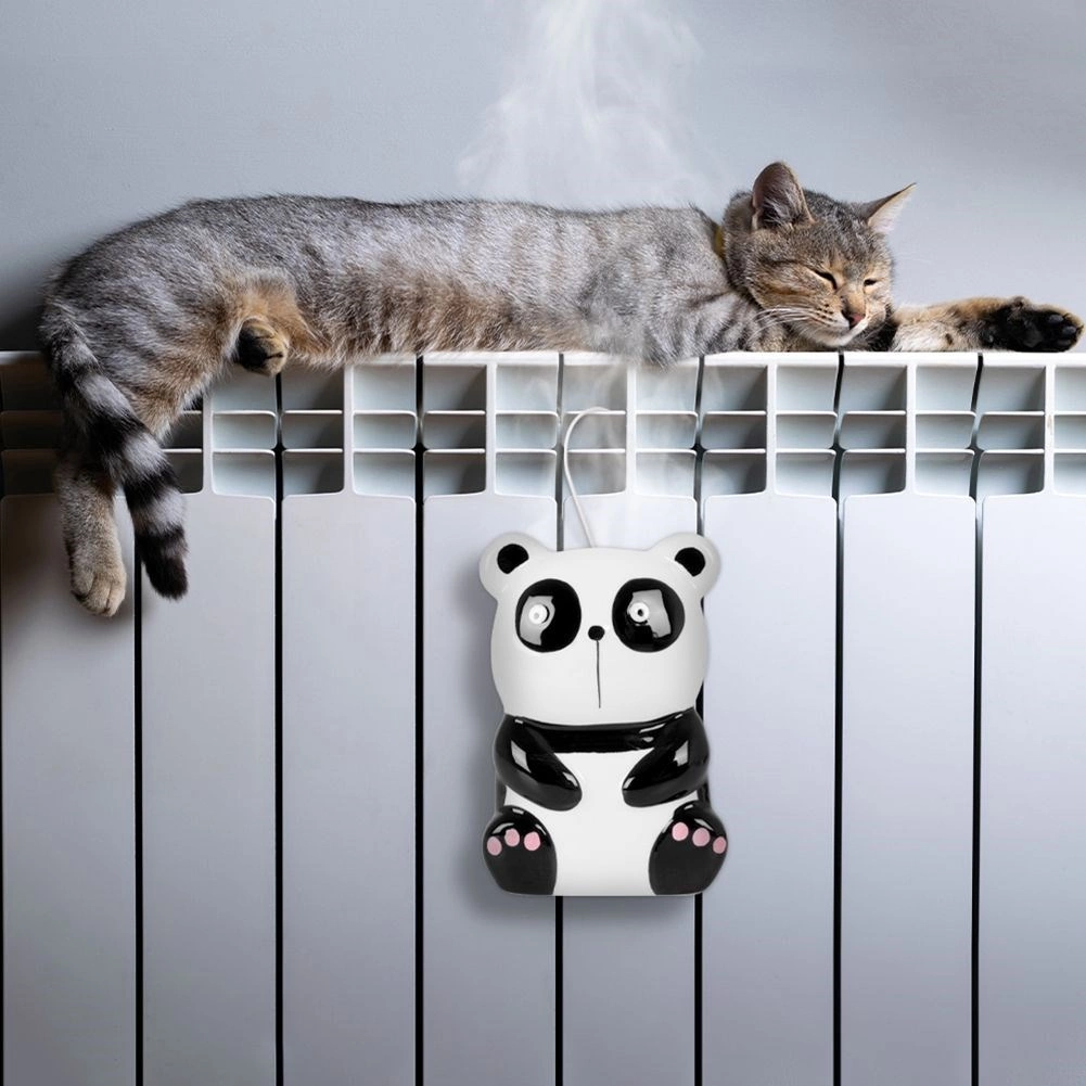 Elegancki i radosny dodatek do wnętrza, który naturalnie poprawia klimat w pomieszczeniu. Ceramiczny nawilżacz w kształcie pandy zawiesisz na grzejniku za pomocą metalowego haczyka i napełnisz wodą. Gdy grzejnik się nagrzewa, woda zaczyna delikatnie odparowywać, a wilgotność powietrza wzrasta, co pomaga na suchy nos, podrażnioną skórę i zmęczone oczy.