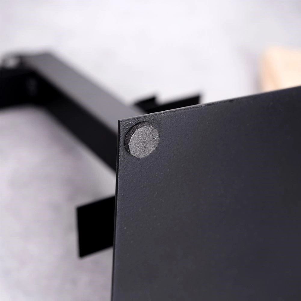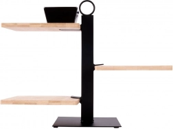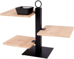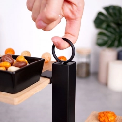 Czarny metalowy słupek z szeroką podstawą zapewnia stabilność, a górny pierścień ułatwia przenoszenie całej etażerki wraz z zawartością.
