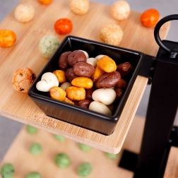 Naturalny bambus nadaje ciepły wygląd i trwałość. W komplecie ceramiczna miseczka 40 ml na sosy, dipy lub drobne przekąski.
