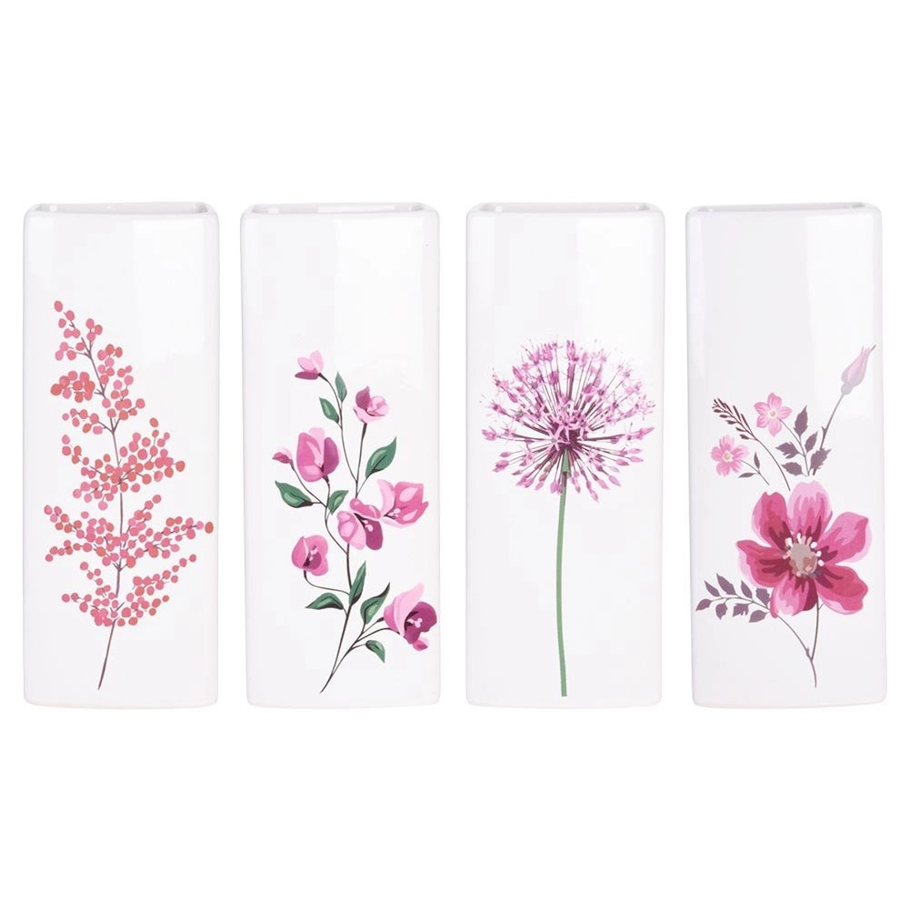 Biała glazura i różne różowe motywy kwiatowe wyglądają czysto i dekoracyjnie – pasują do salonu, sypialni i pokoju dziecięcego.