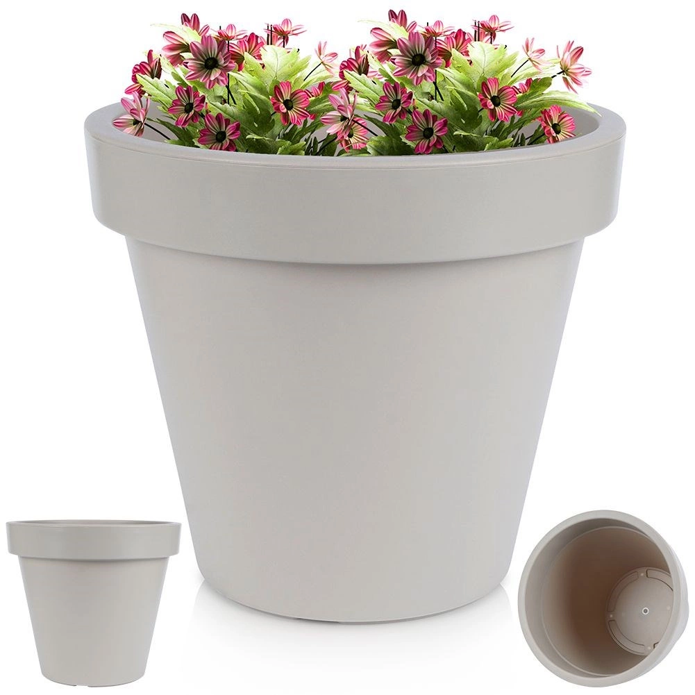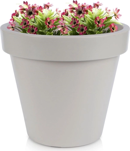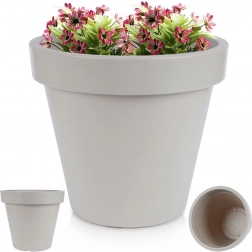 Praktyczna i stylowa donica o klasycznym kształcie i szerokim rancie świetnie sprawdzi się do sadzenia roślin ozdobnych, kwiatów i ziół. Dzięki niskiej wadze jest łatwa w przenoszeniu, a jednocześnie wykonana z mocnego plastiku, który wytrzymuje codzienne użytkowanie i zmienne warunki pogodowe.