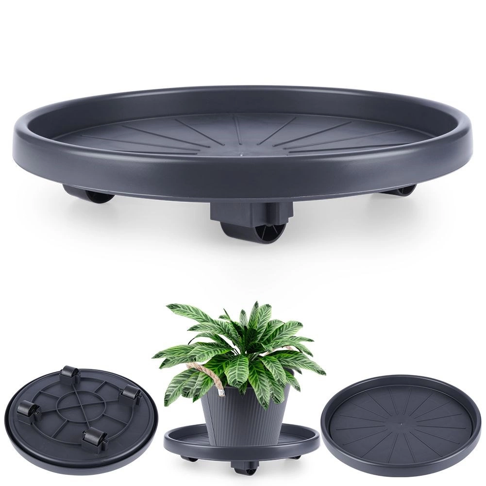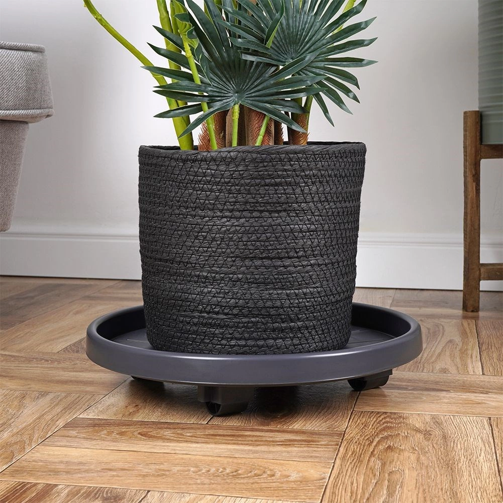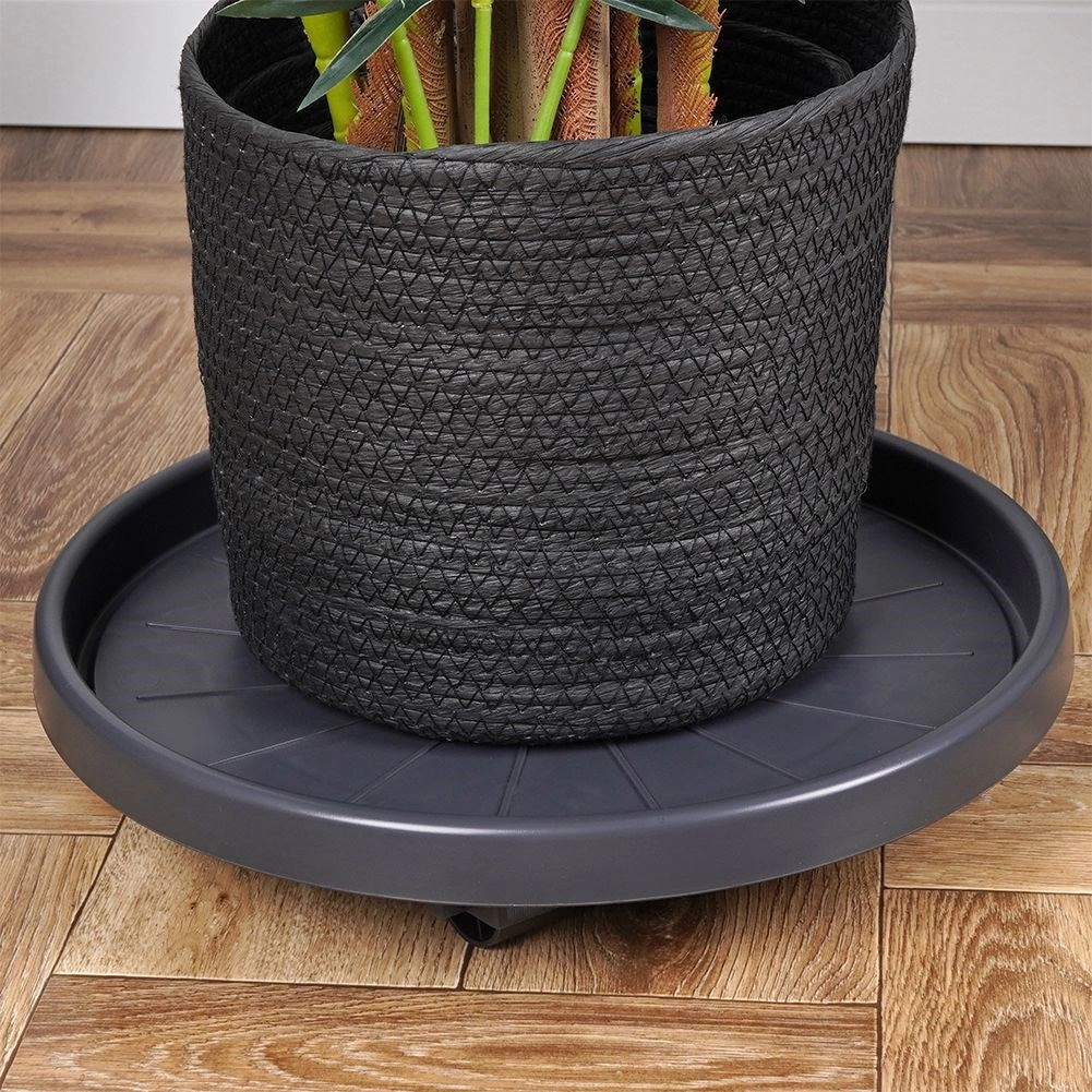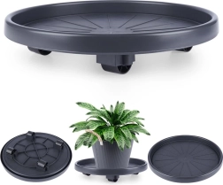 Wykonana z wysokiej jakości, wytrzymałego tworzywa w ciemnoszarym odcieniu z czarnymi kółkami dla długiej żywotności. Podstawka jest uniwersalna do użytku wewnątrz i na zewnątrz – ułatwia sprzątanie, zmiany aranżacji oraz sezonowe przenoszenie roślin, a jednocześnie chroni powierzchnię podłóg.