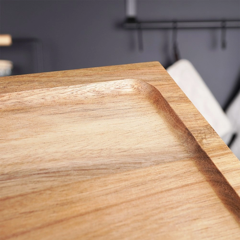 Ta uniwersalna deska do serwowania z nóżkami wyróżnia się czystym designem i funkcjonalnością. Dzięki solidnemu drewnu akacjowemu jest odporna na wilgoć i odkształcenia, świetnie sprawdza się w codziennym użytkowaniu w kuchni i podczas przyjęć. Podwyższone krawędzie utrzymują żywność na miejscu i ułatwiają przenoszenie.