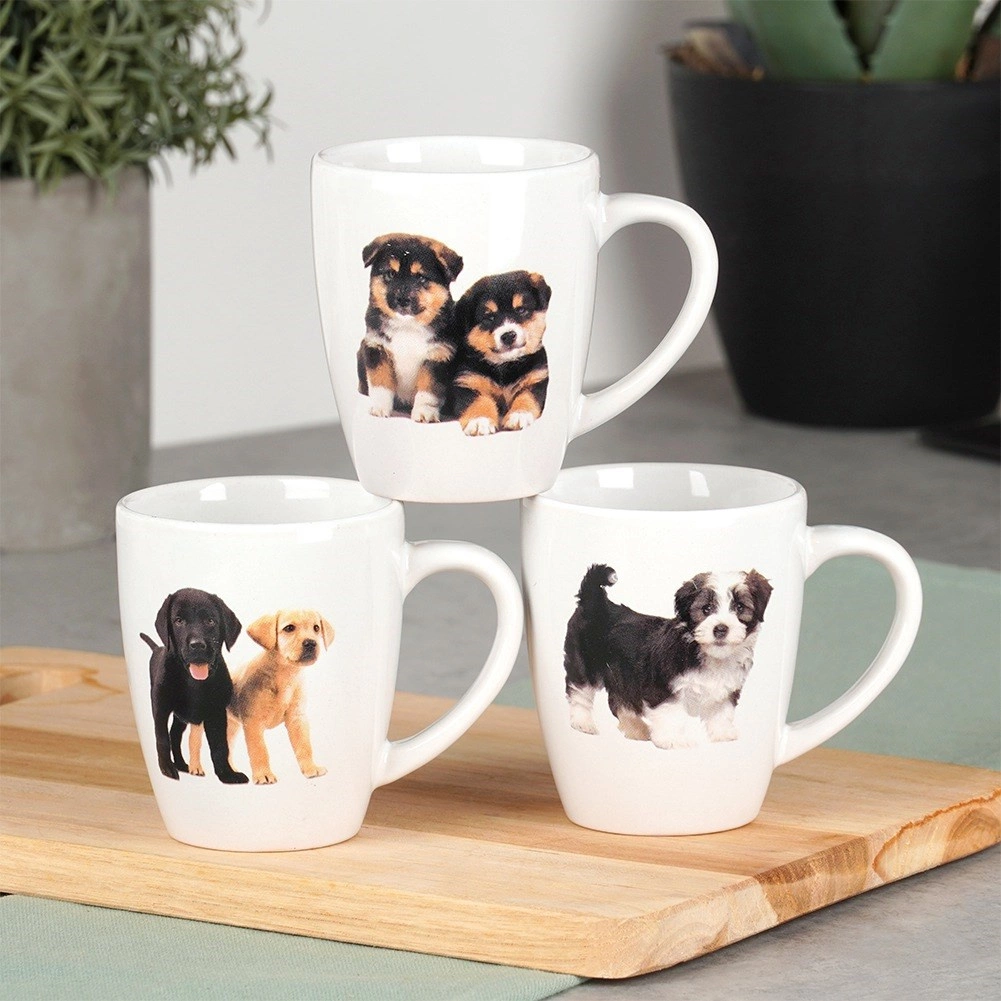 Realistyczne fotografie piesków nadają kubkom wyjątkowego uroku i zamieniają filiżankę kawy w mały rytuał radości. Świetny pomysł na prezent dla miłośników zwierząt.