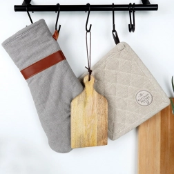 Praktyczny uchwyt ułatwia przenoszenie, a skórzana pętla umożliwia wygodne zawieszenie. Materiał jest odporny na wilgoć i odkształcenia, nie pochłania zapachów i szybko schnie (odporność termiczna do 70 °C). Dla prawidłowej pielęgnacji nie zaleca się mycia w zmywarce; po użyciu wystarczy przetrzeć wilgotną ściereczką i pozostawić do wyschnięcia.